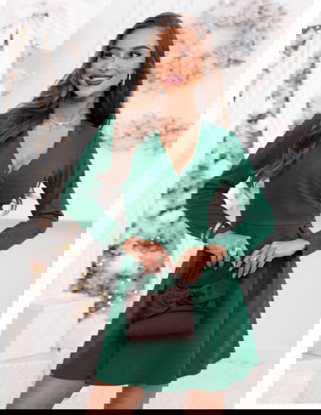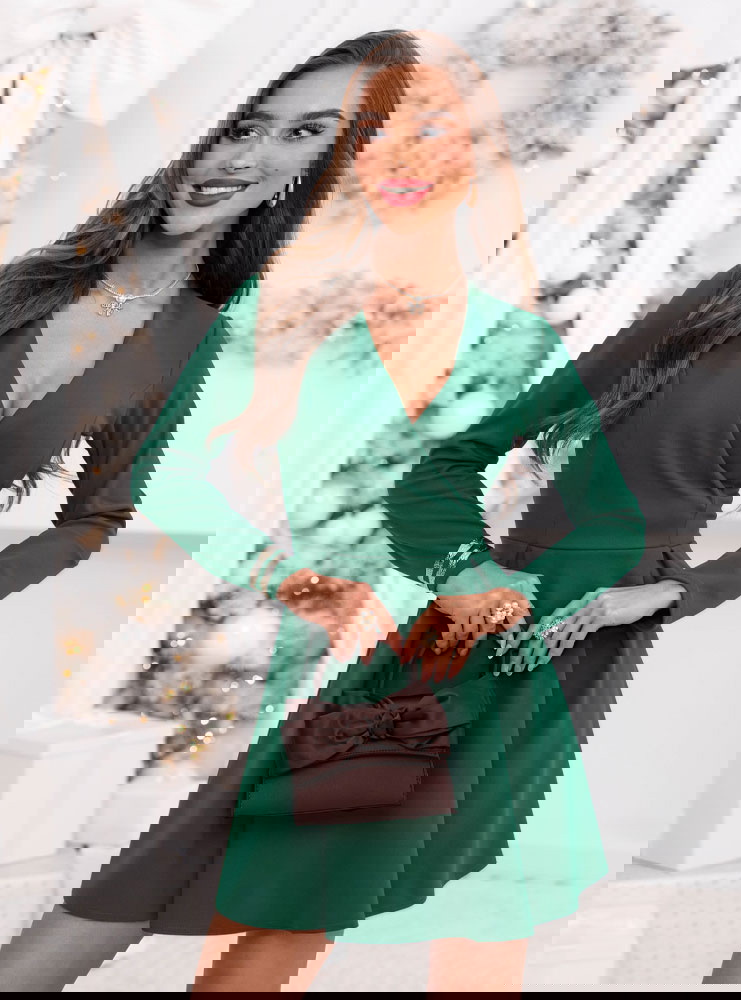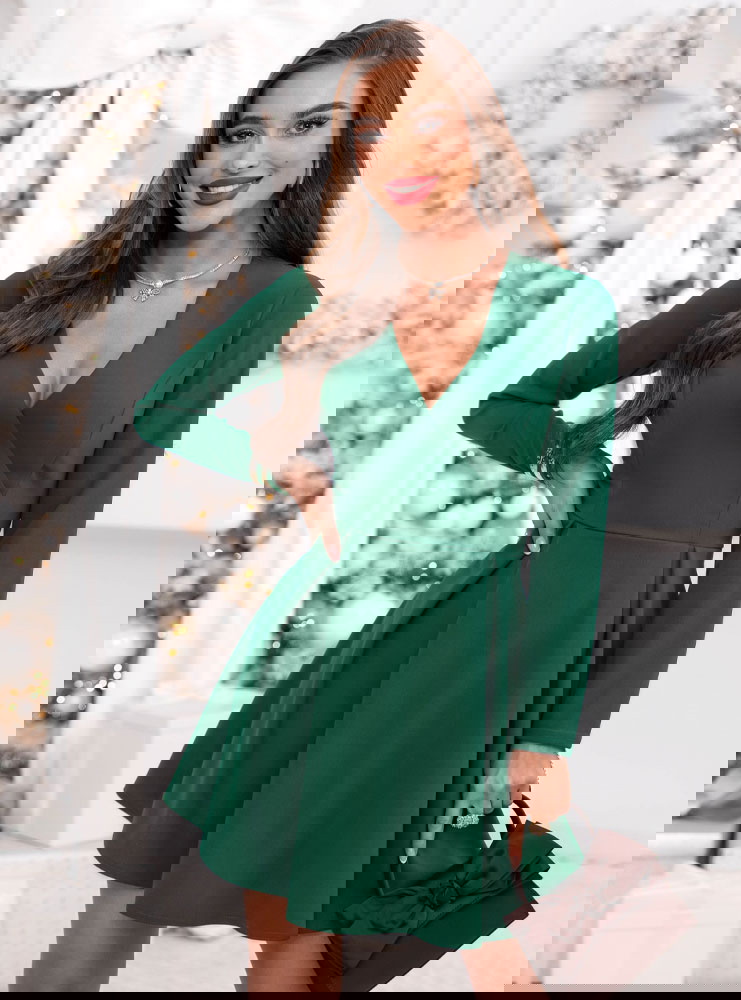 Sukienka z przekładanym dekoltem Rennae - butelkowa zieleń