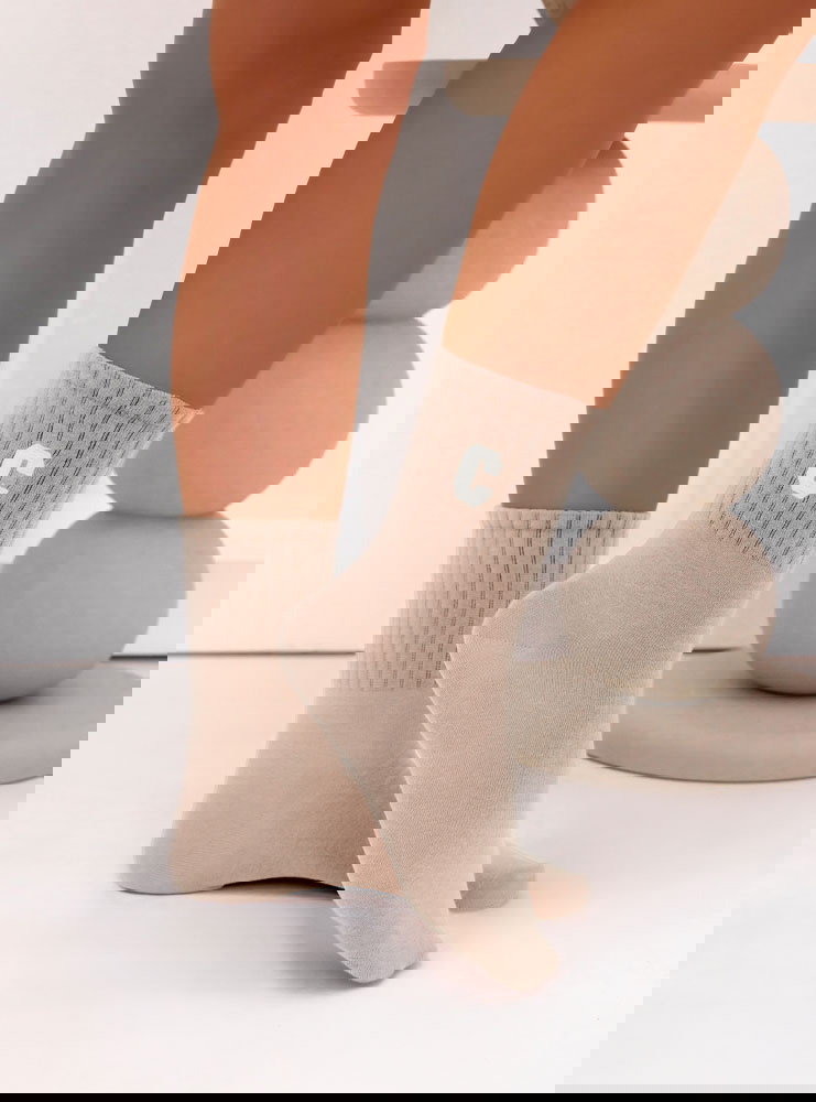 Jasnobeżowe skarpetki z ozdobnym motywem Corrine