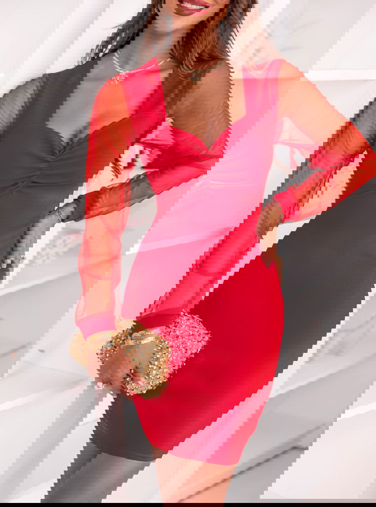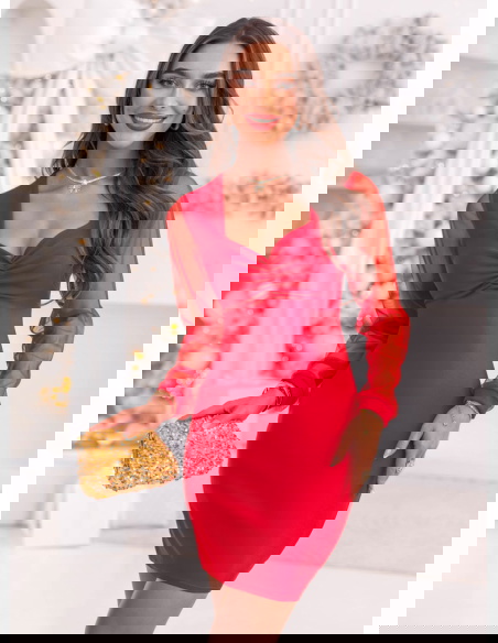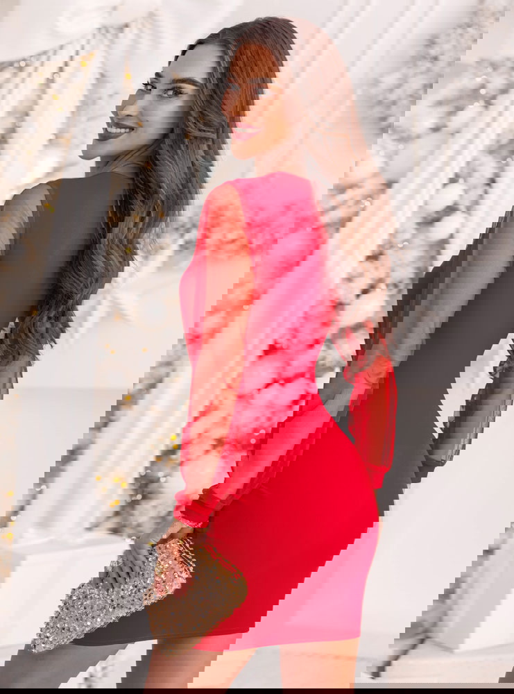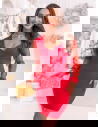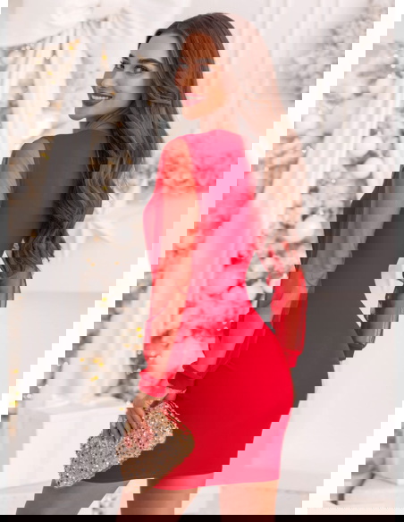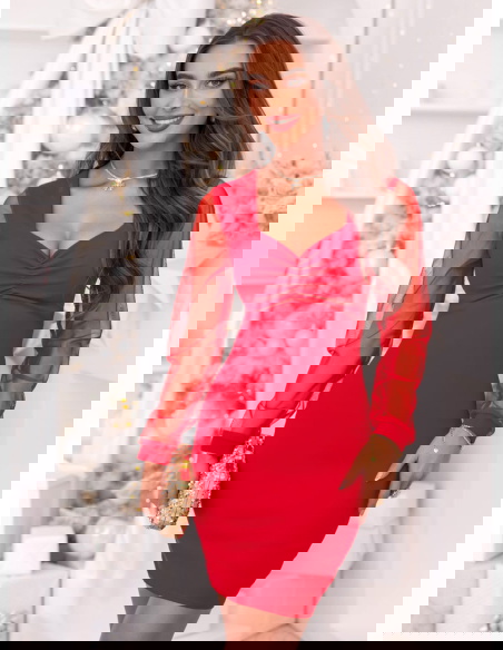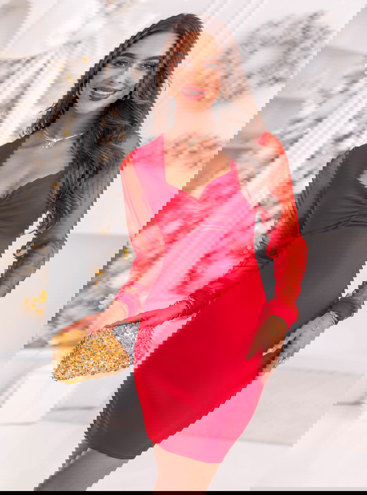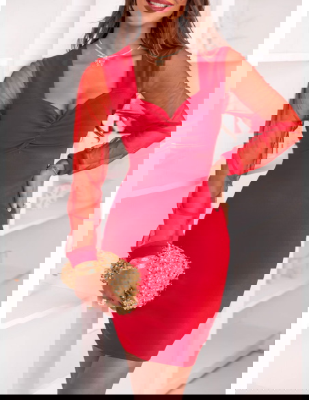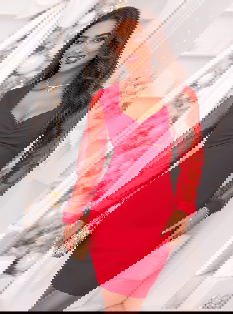 Malinowa sukienka z tiulowymi rękawami i dekoltem w serce Krishaa
