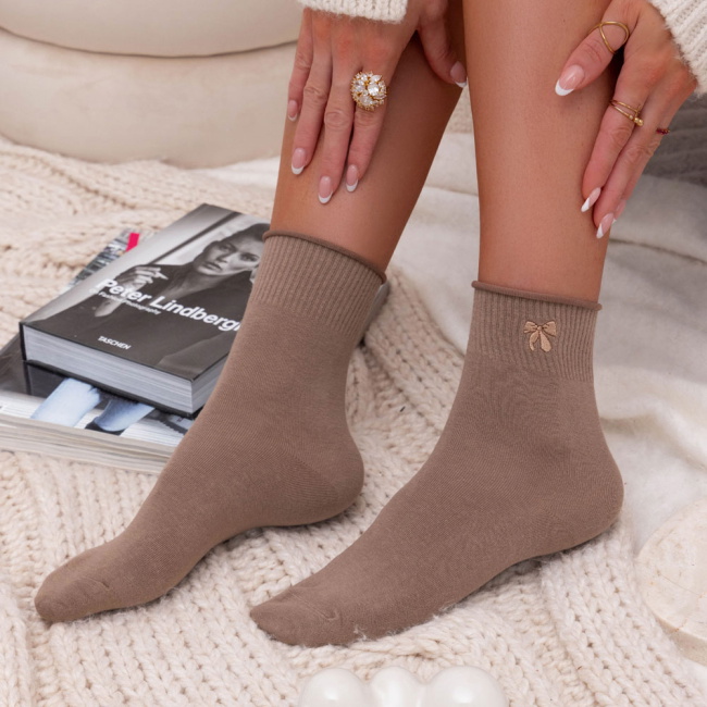 Skarpetki z ozdobną naszywką Raelenee - mocha mousse