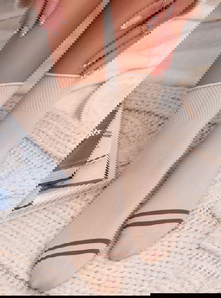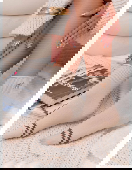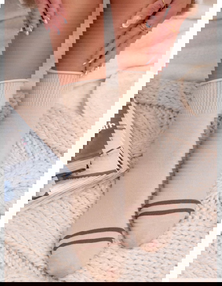 Beżowe skarpetki z ozdobną naszywką Raelenee