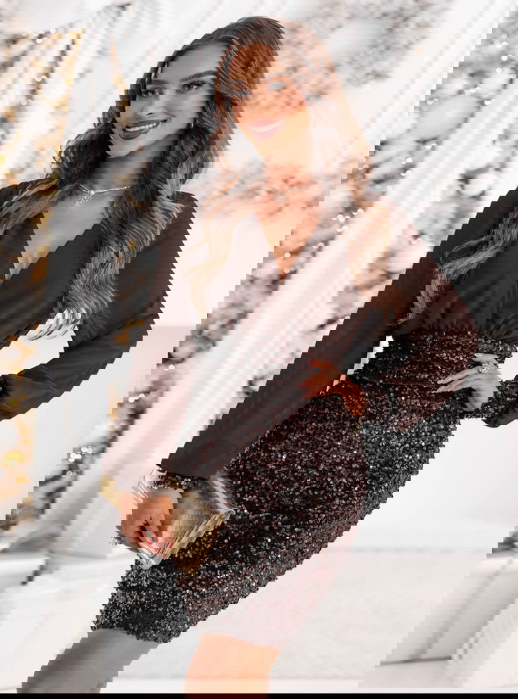 Czekoladowa cekinowa sukienka mini...