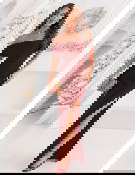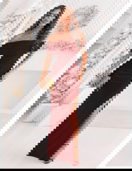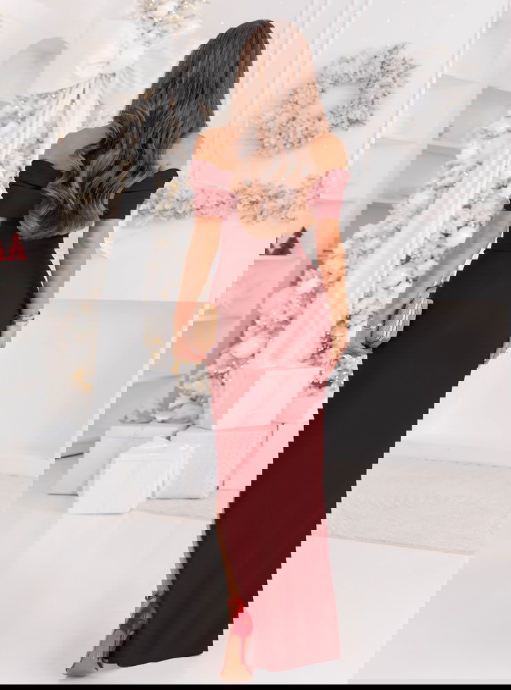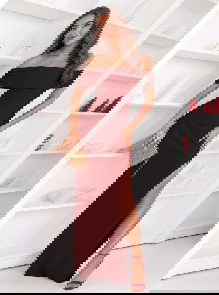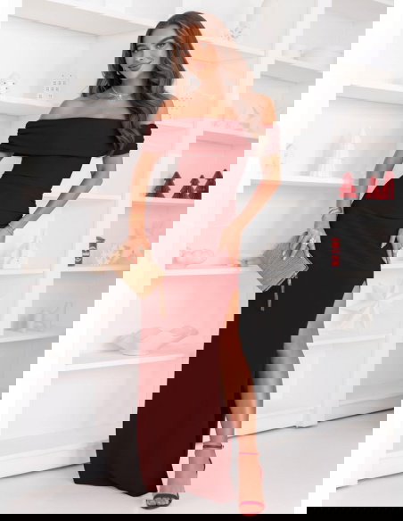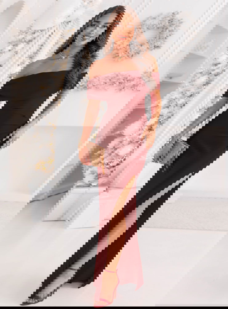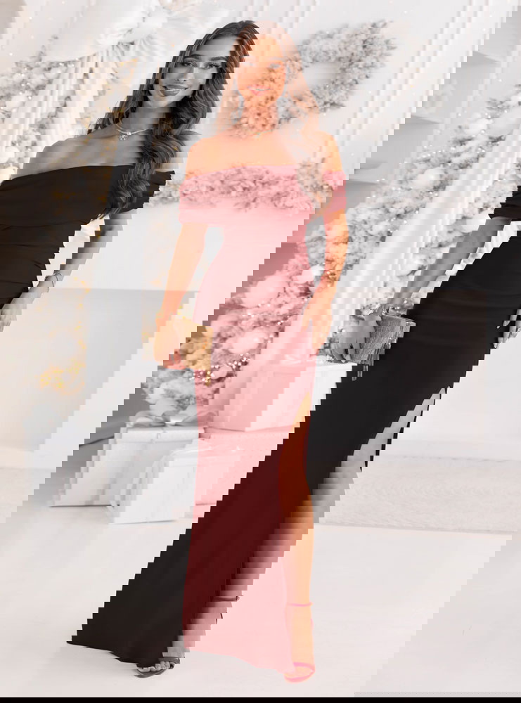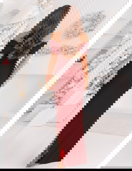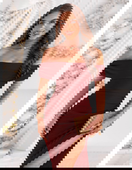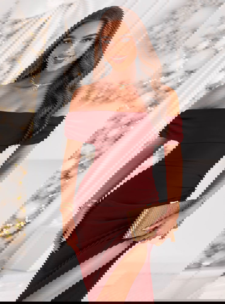 Bordowa długa dopasowana sukienka z rozcięciem Darnetta