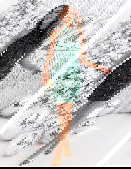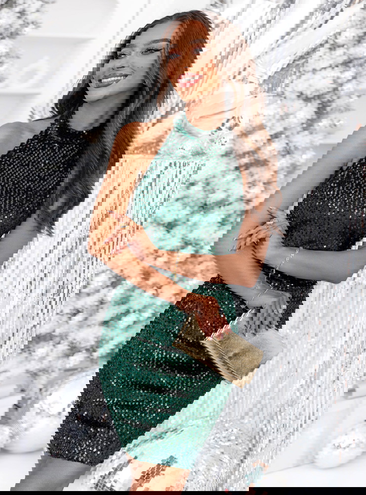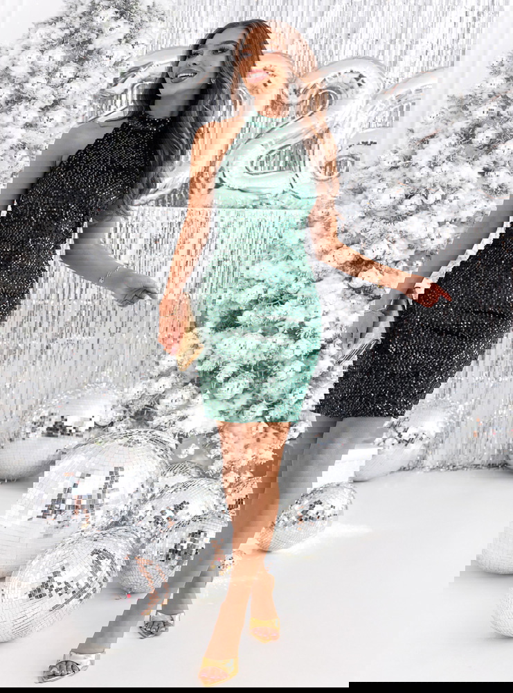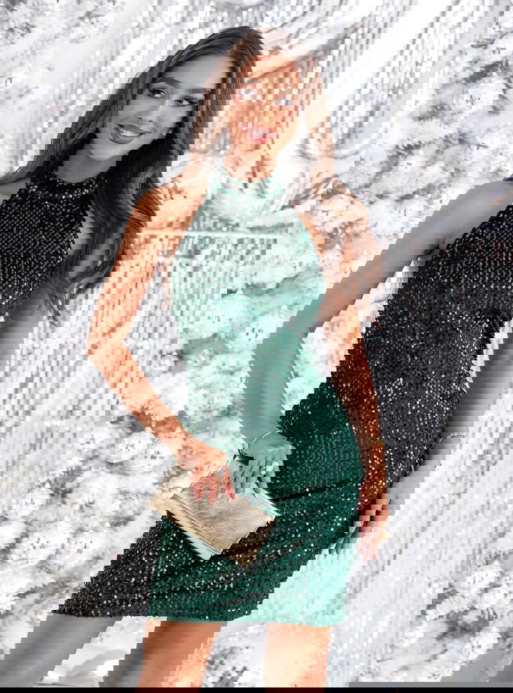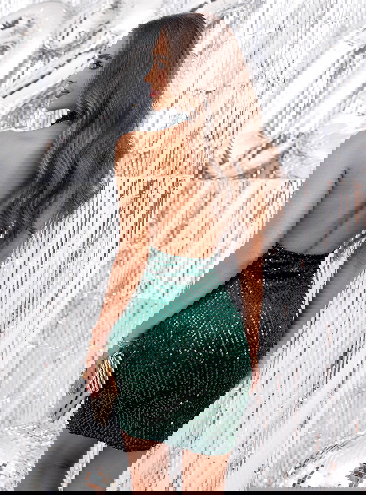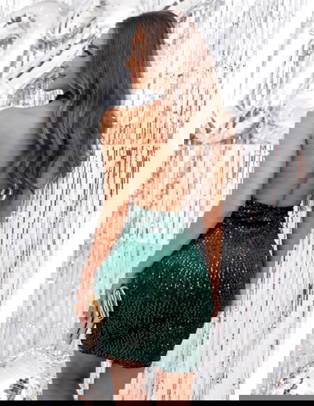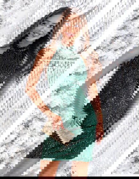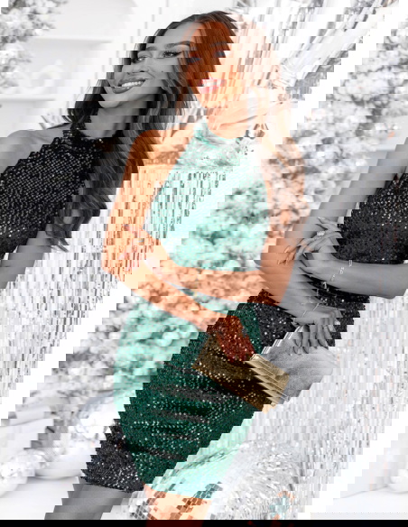 Cekinowa sukienka z wycięciem na plecach Dyanne - butelkowa zieleń