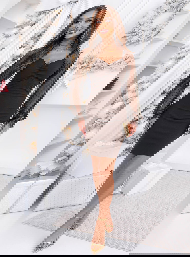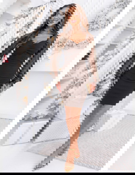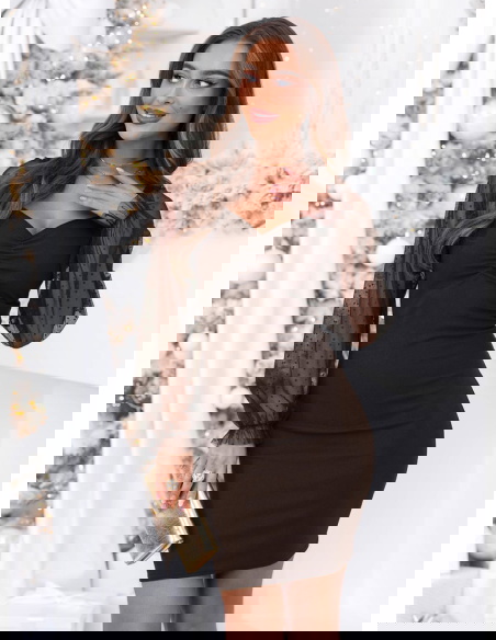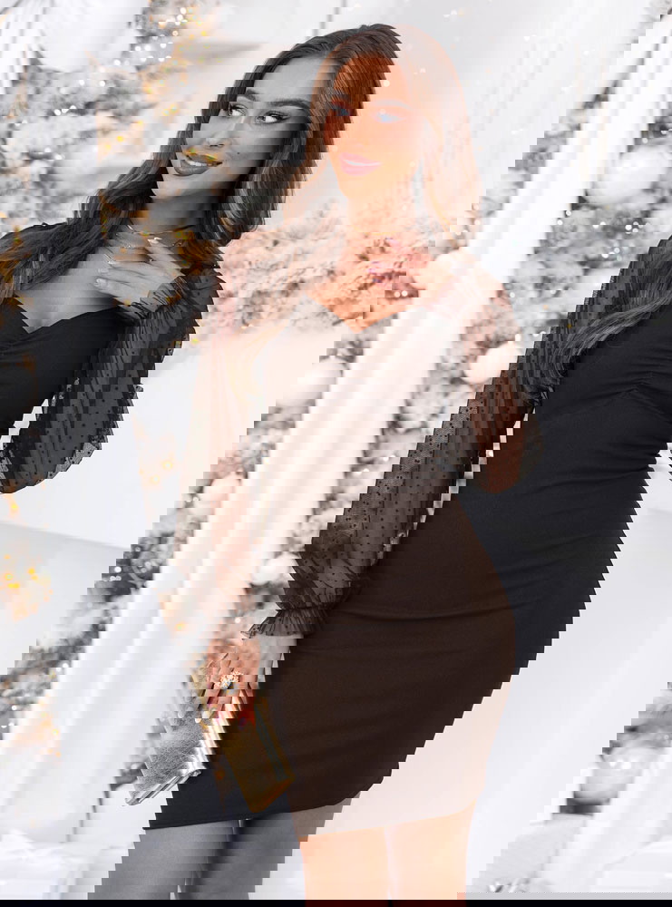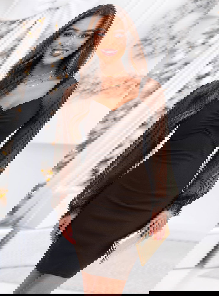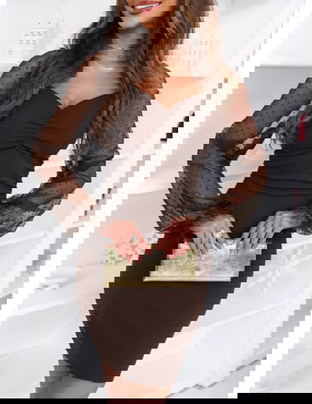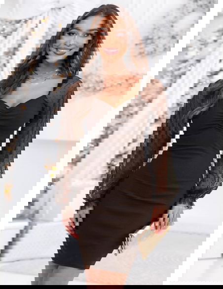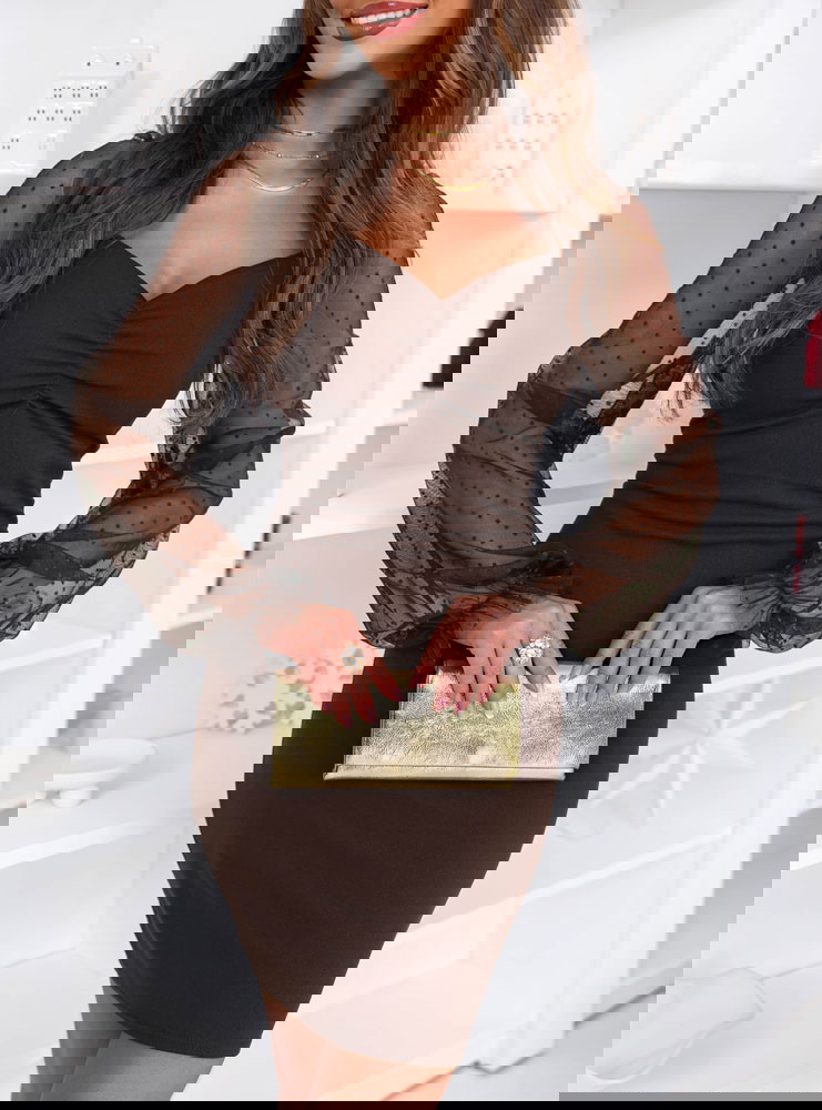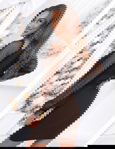Czekoladowa dopasowana sukienka z tiulowymi rękawami Glennalee