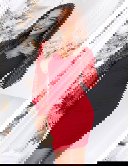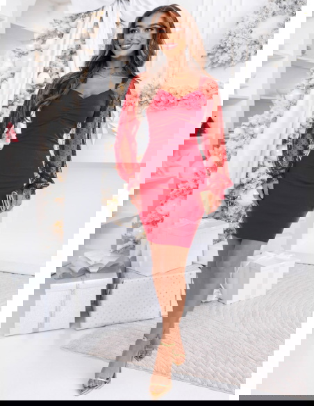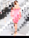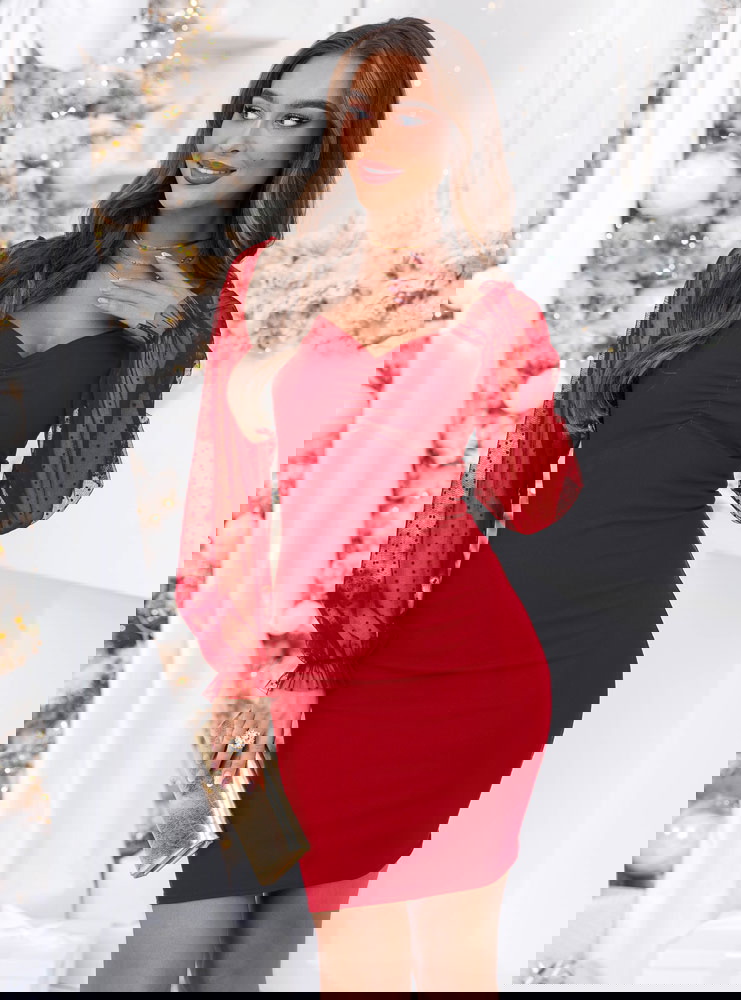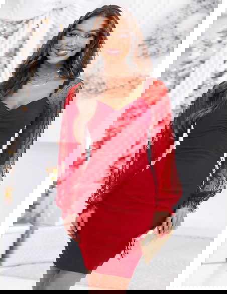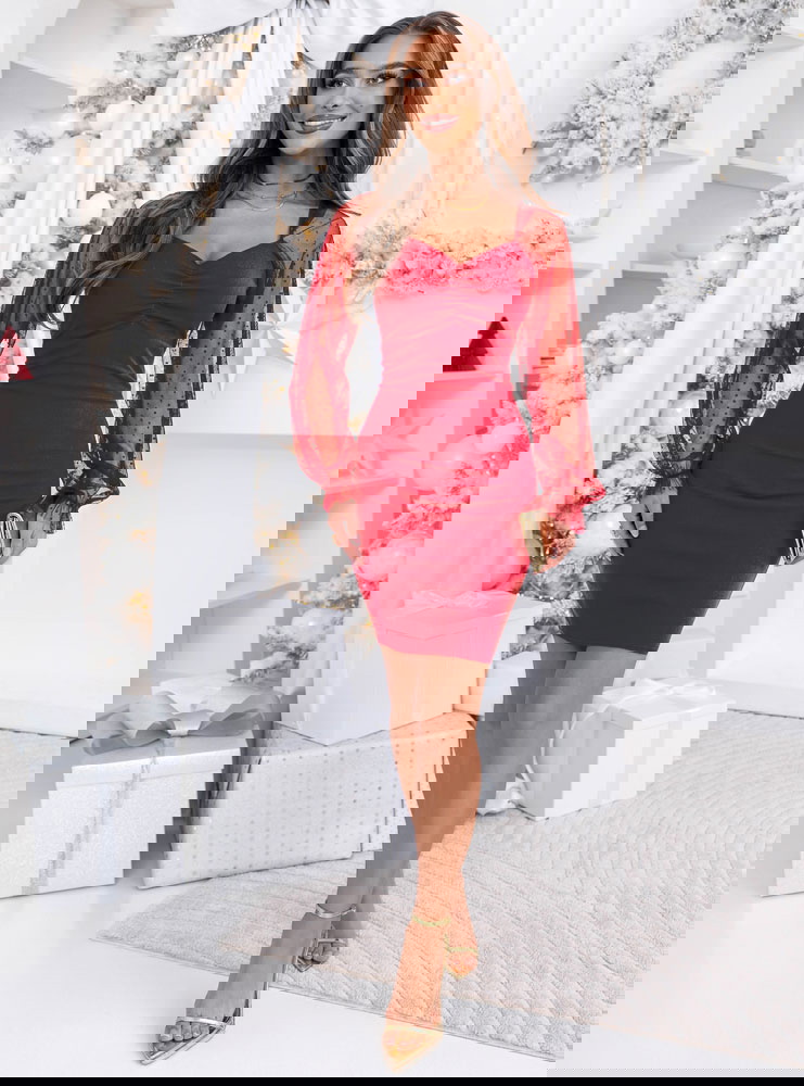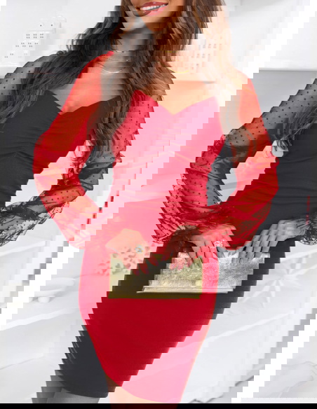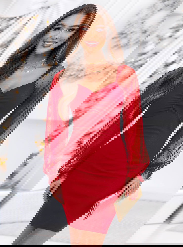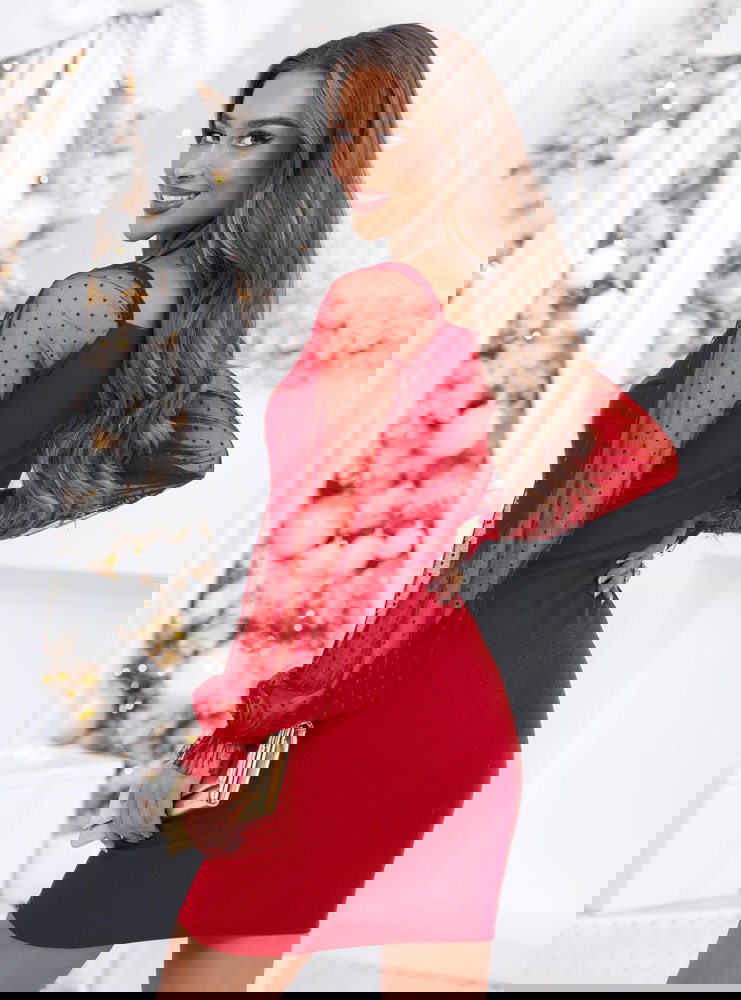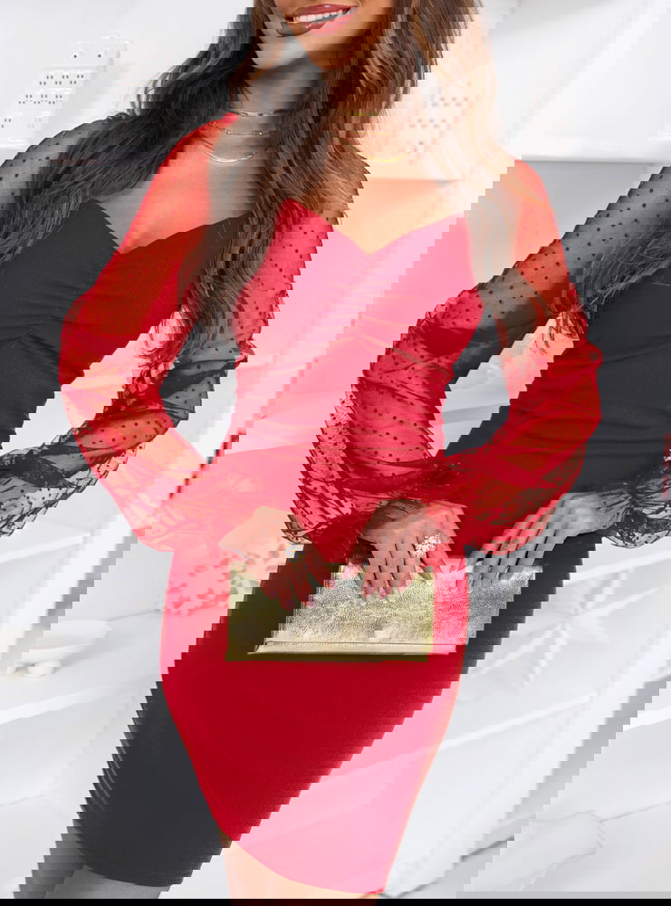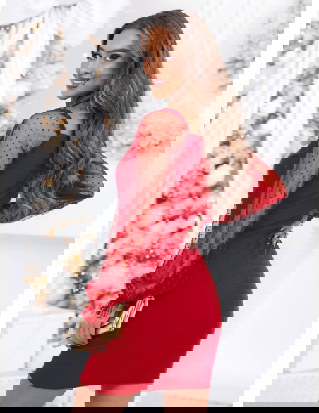 Malinowa dopasowana sukienka z tiulowymi rękawami Glennalee