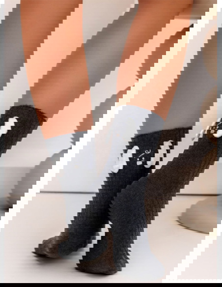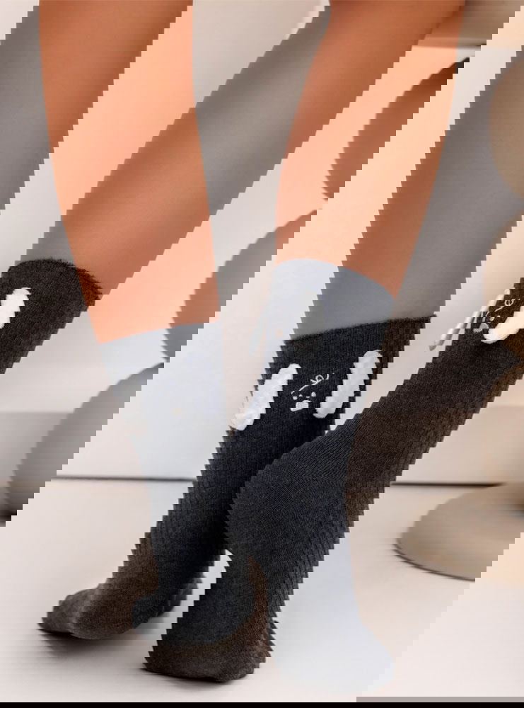 Grafitowe damskie skarpetki z ozdobnym motywem Amiciyah