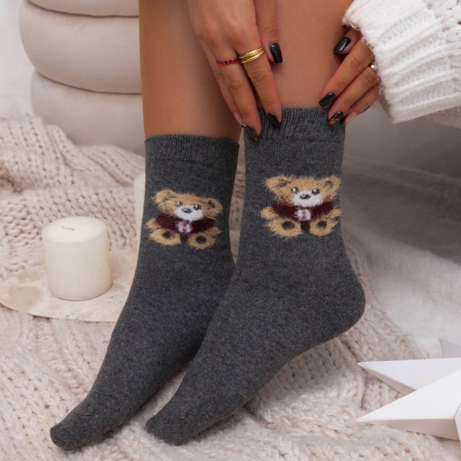 Grafitowe damskie skarpetki z ozdobnym wzorem Mariselaa