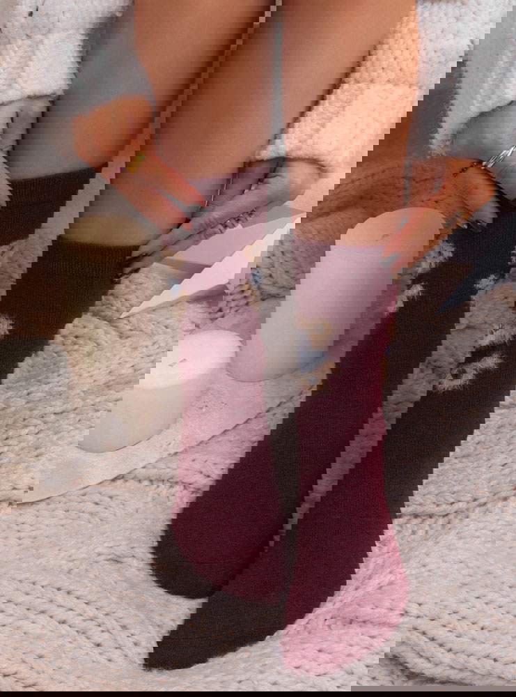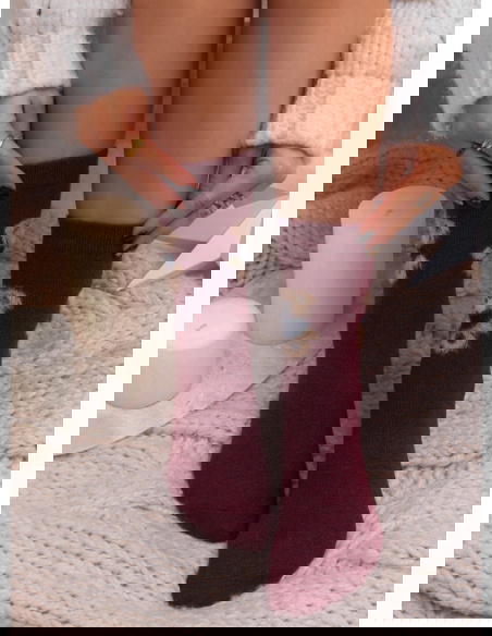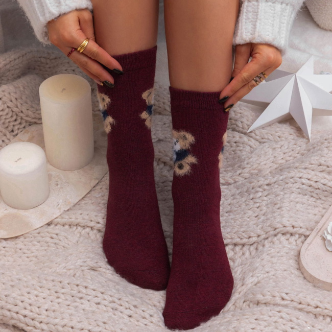 Bordowe damskie skarpetki z ozdobnym wzorem Mariselaa