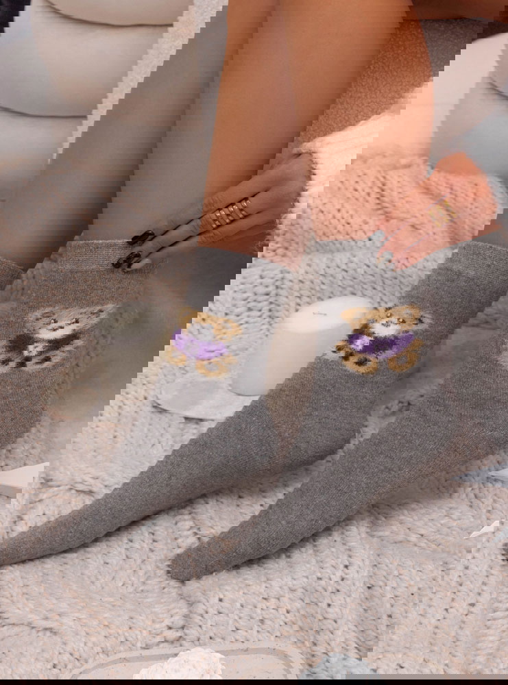 Szare damskie skarpetki z ozdobnym wzorem Mariselaa