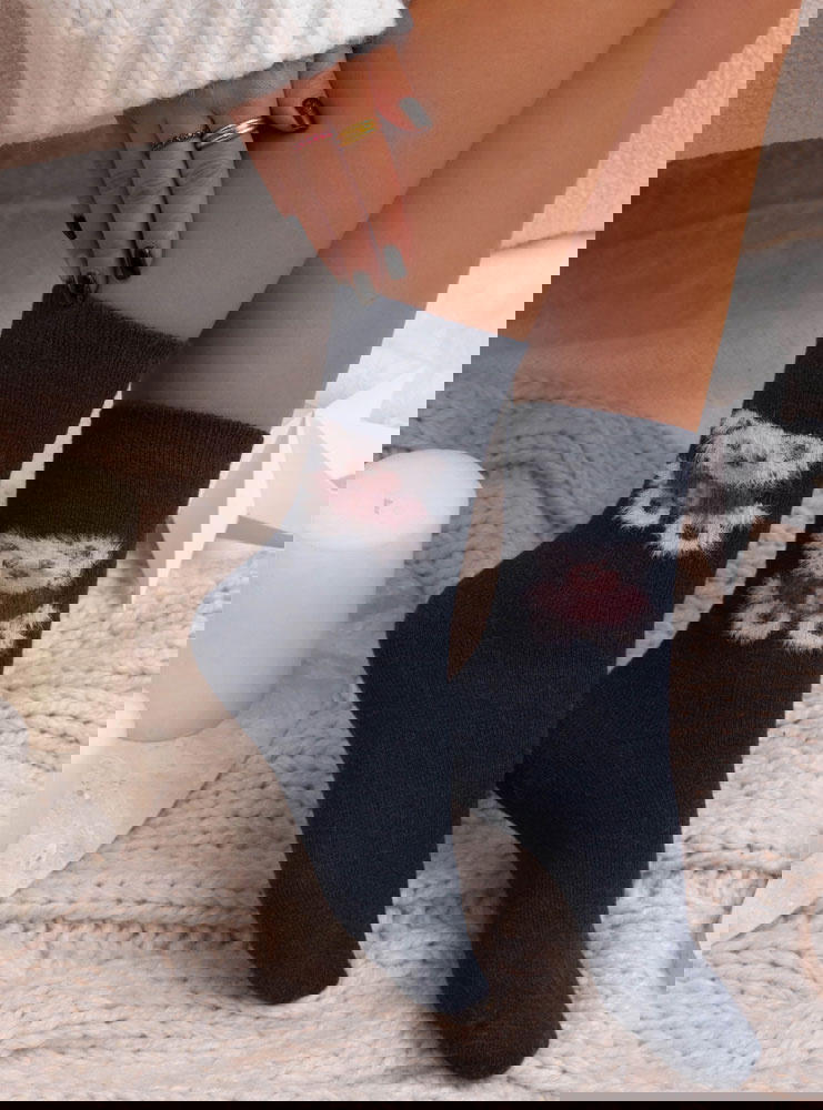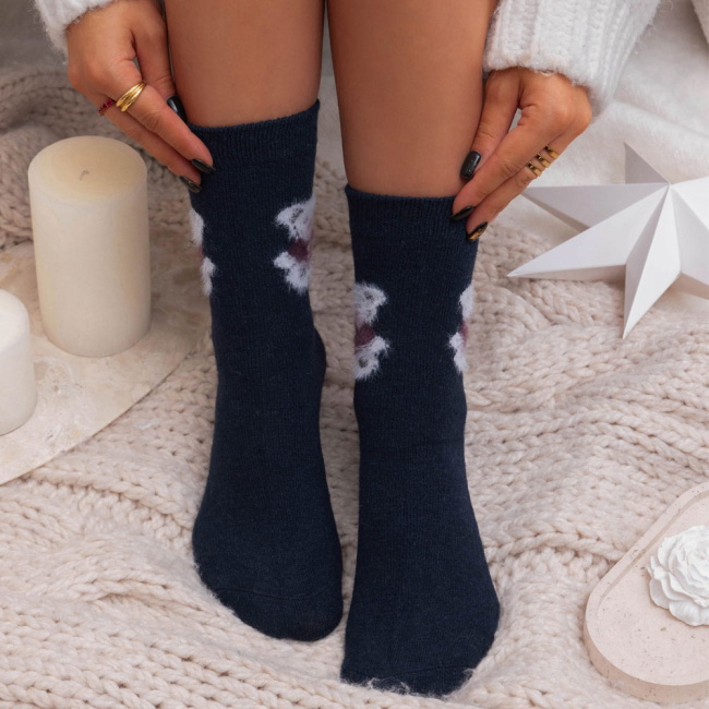 Granatowe damskie skarpetki z ozdobnym wzorem Mariselaa