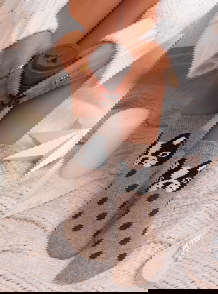 Beżowe skarpetki z ozdobnym wzorem Savanaa