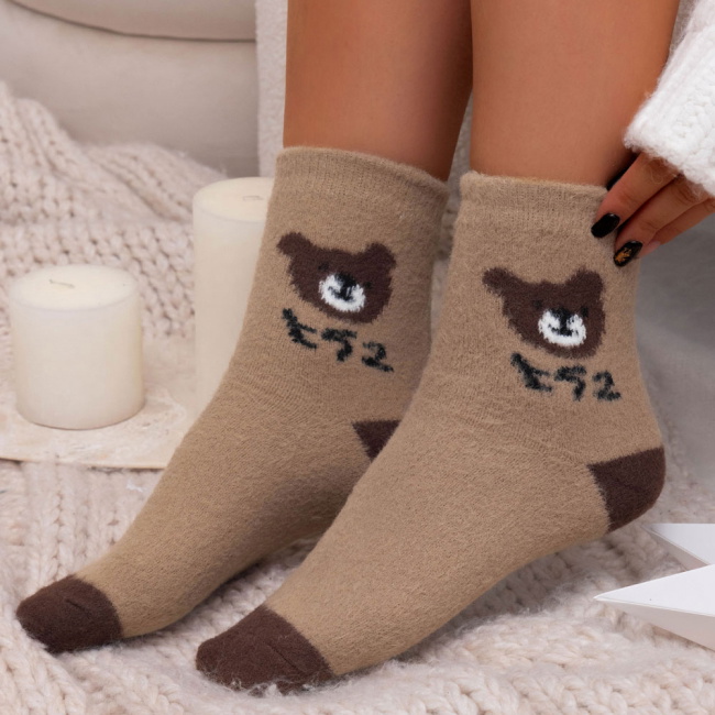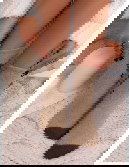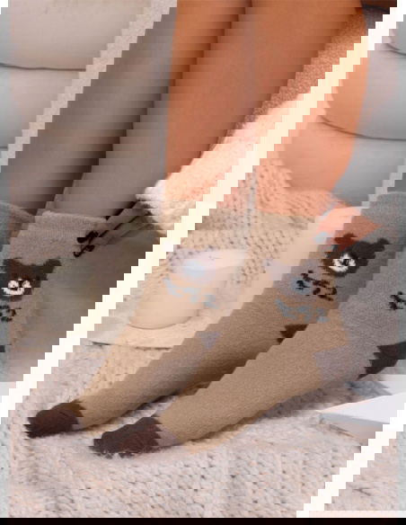 Beżowe miękkie przytulne skarpetki z alpaki Ralynne