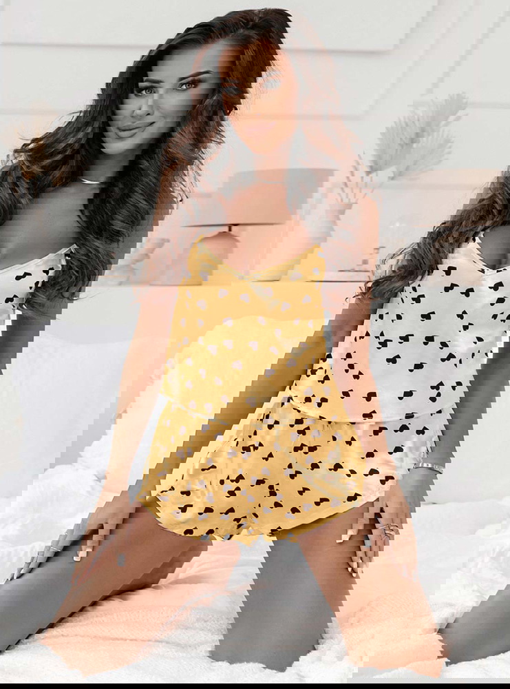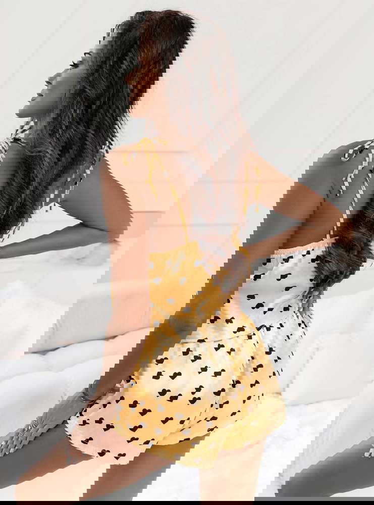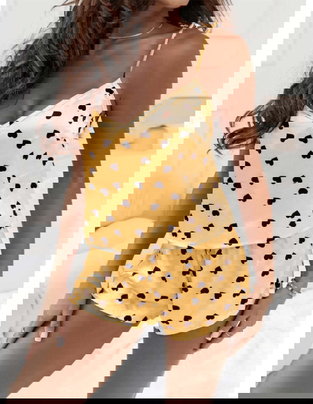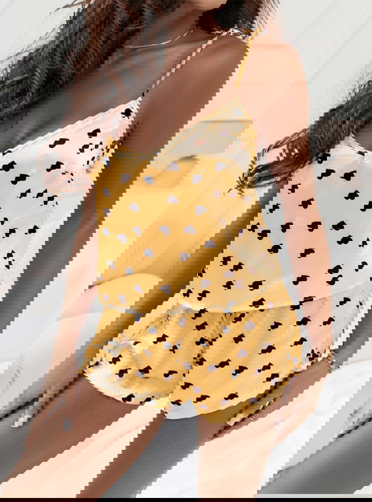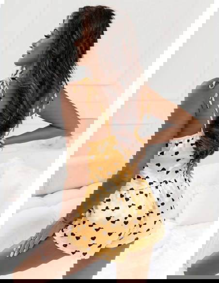 Złota satynowa piżama w serca z wiązanymi ramiączkami Aether -
