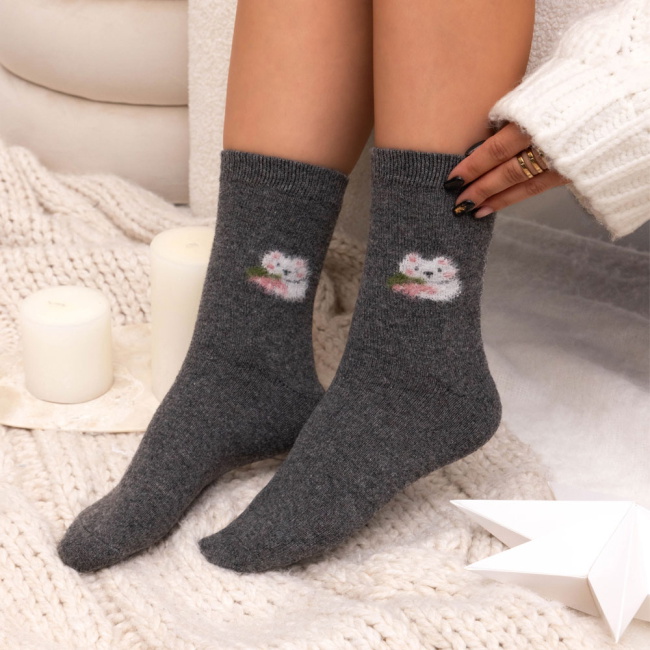 Grafitowe skarpetki z ozdobnym wzorem Lubora