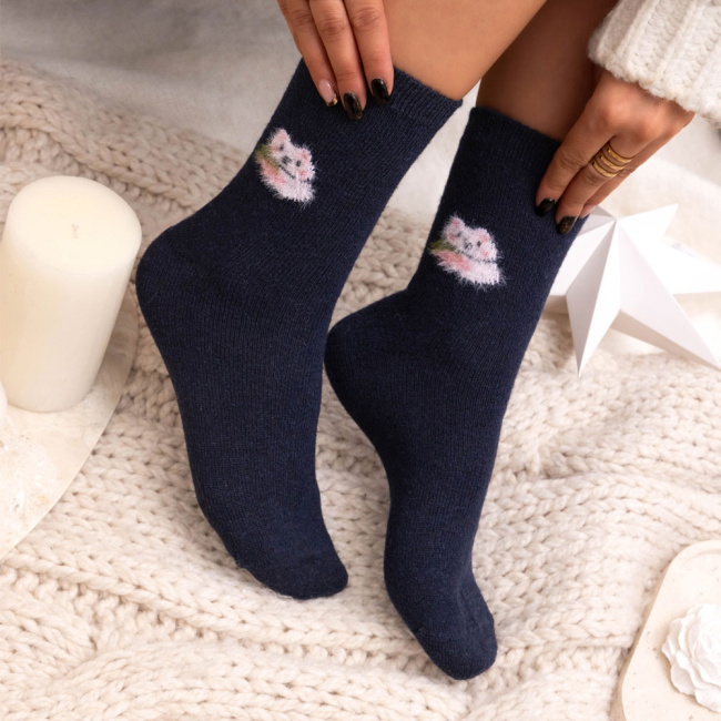 Granatowe skarpetki z ozdobnym wzorem Lubora