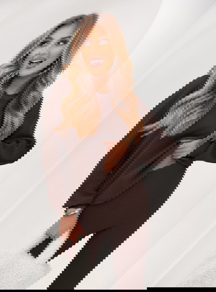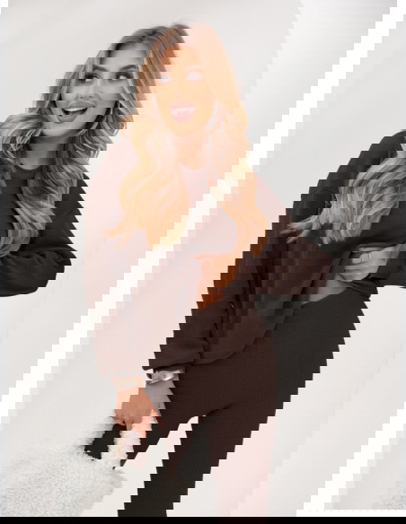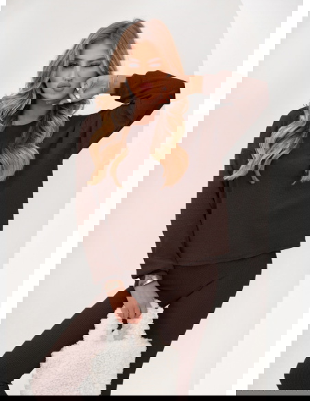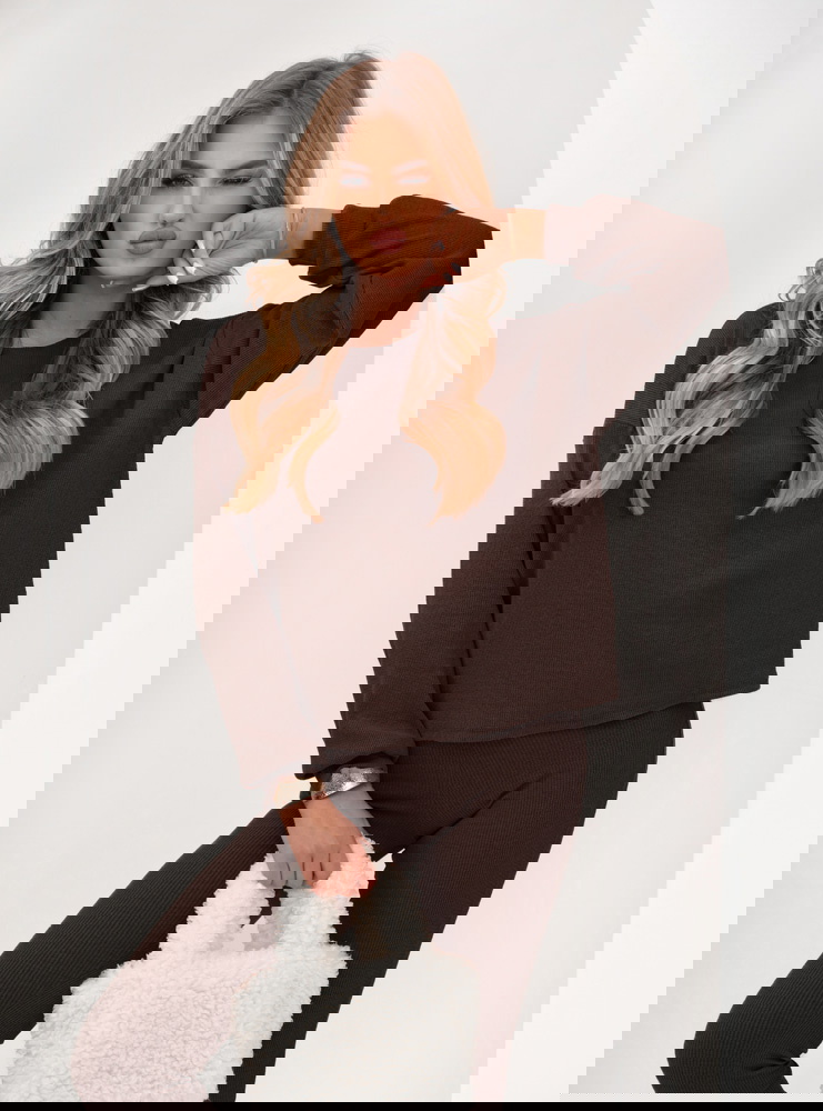Czekoladowy prążkowany komplet bluza i legginsy Deadra to szybki sposób na modny look bez zastanawiania się, co z czym połączyć. Prążkowane wykończenie dodaje mu stylu i sprawia, że całość wygląda dopracowanie.