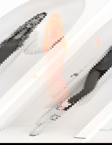 Prążkowany komplet bluza i legginsy Deadra - mocha mousse to zestaw, który tworzy gotową stylizację w kilka sekund. Spójny kolor daje efekt dopracowania, nawet gdy wybierasz prostotę. Luźniejsza bluza pięknie równoważy dopasowany dół i wygląda bardzo nowocześnie. Legginsy podkreślają nogi i nadają sylwetce zgrabnych proporcji. Prążkowana faktura dodaje całości charakteru i sprawia, że look nie jest banalny. To komplet, w którym łatwo poczuć się swobodnie i pewnie jednocześnie. Świetnie wygląda solo, ale też lubi warstwy, gdy dorzucisz kurtkę lub płaszcz. Mocha mousse pasuje do jasnych i ciemnych dodatków, więc stylizowanie jest intuicyjne. Złota biżuteria, czapka czy większa torba momentalnie podkręcą efekt. Jeśli cenisz wygodę, a jednocześnie chcesz wyglądać stylowo na co dzień, ten zestaw jest dla Ciebie.