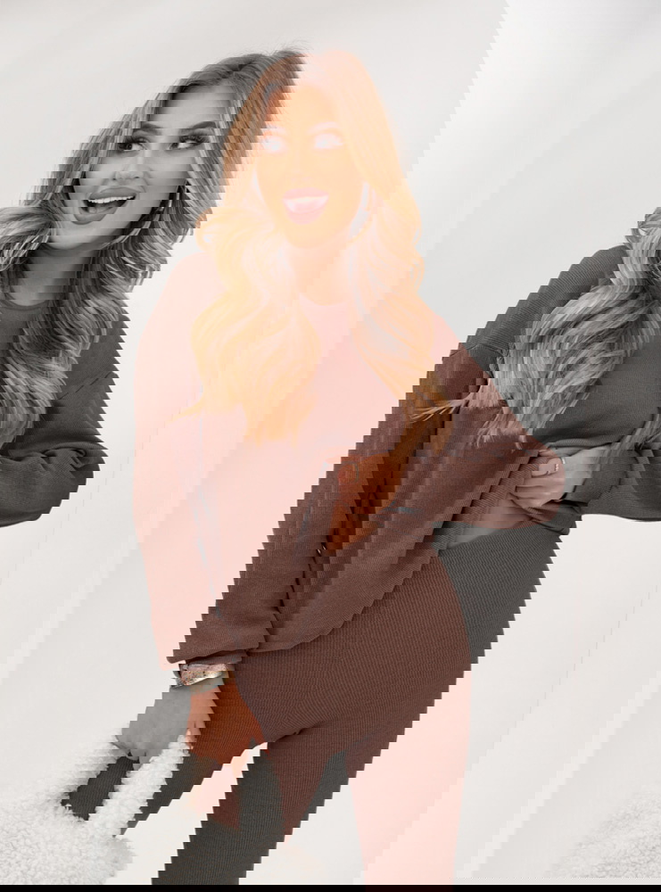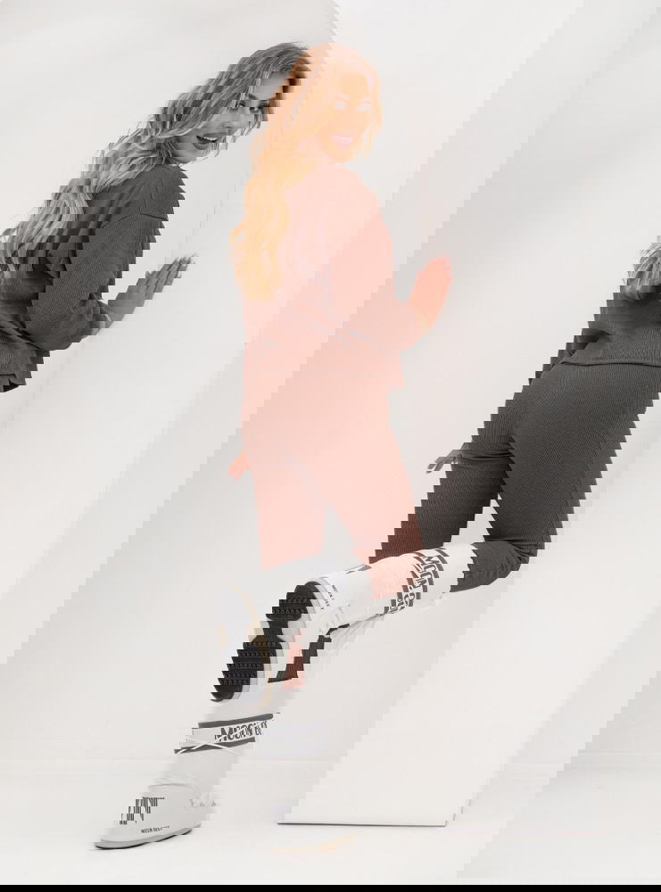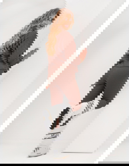 Prążkowany komplet bluza i legginsy Deadra - mocha mousse to baza, do której będziesz wracać przez cały sezon. Kolor jest na tyle uniwersalny, że łatwo dopasujesz do niego dodatki w różnych stylach.