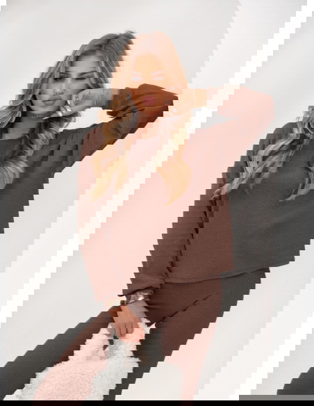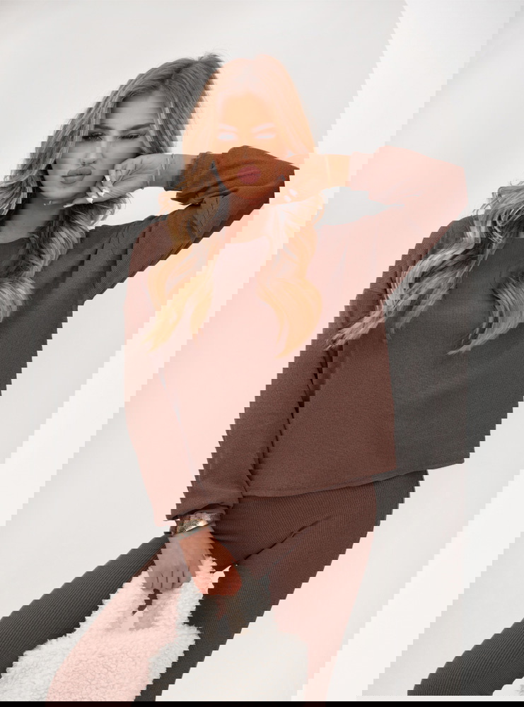 Prążkowany komplet bluza i legginsy Deadra - mocha mousse
