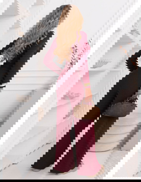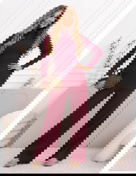 Bordowy prążkowany komplet bluzka z...