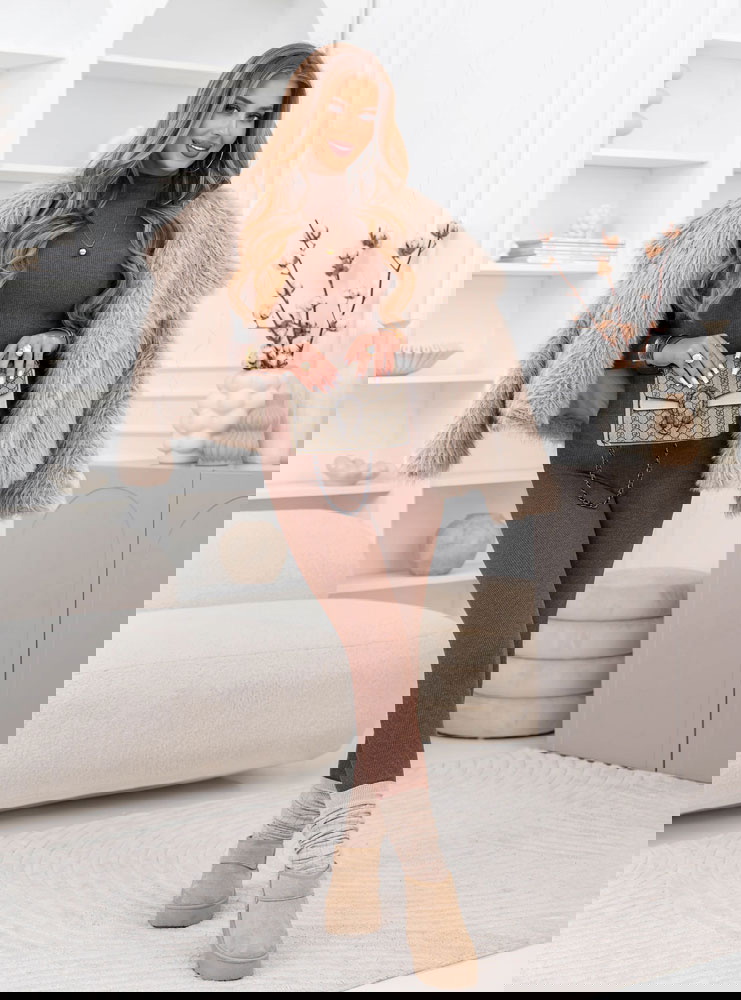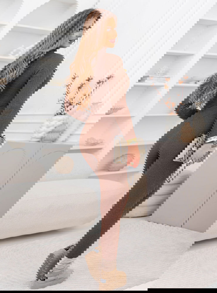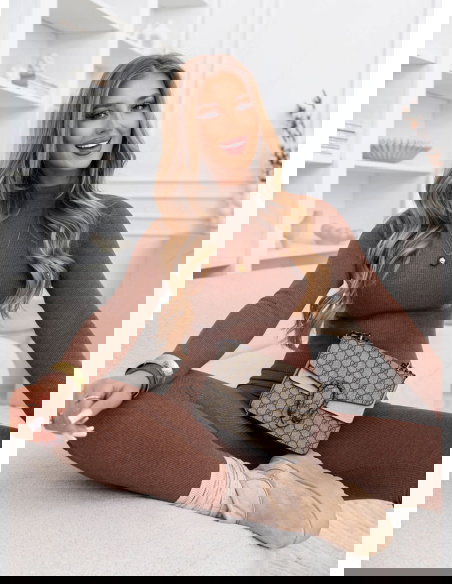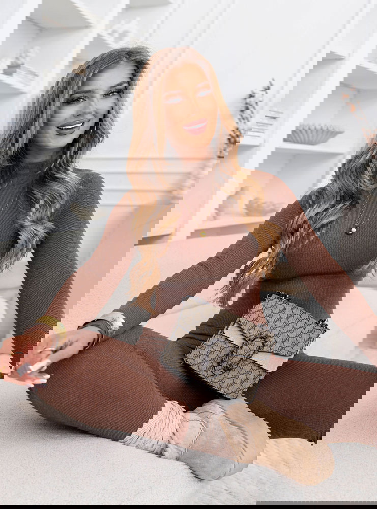 Prążkowany komplet bluzka z golfem i leginsy Layton - mocha mousse