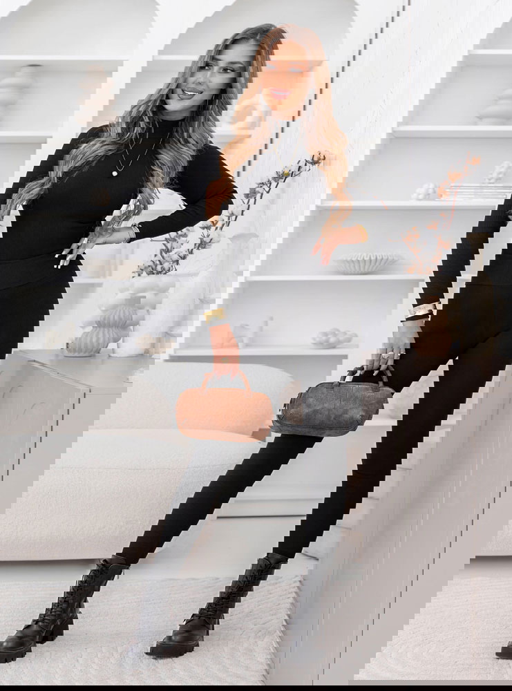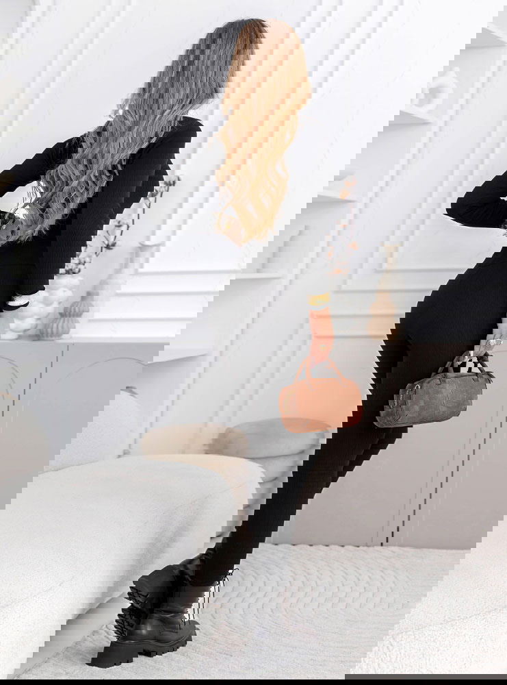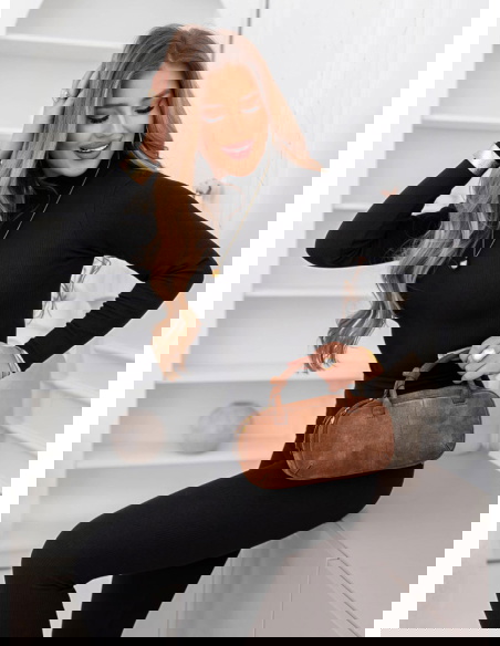 Czarny prążkowany komplet bluzka z golfem i leginsy Layton