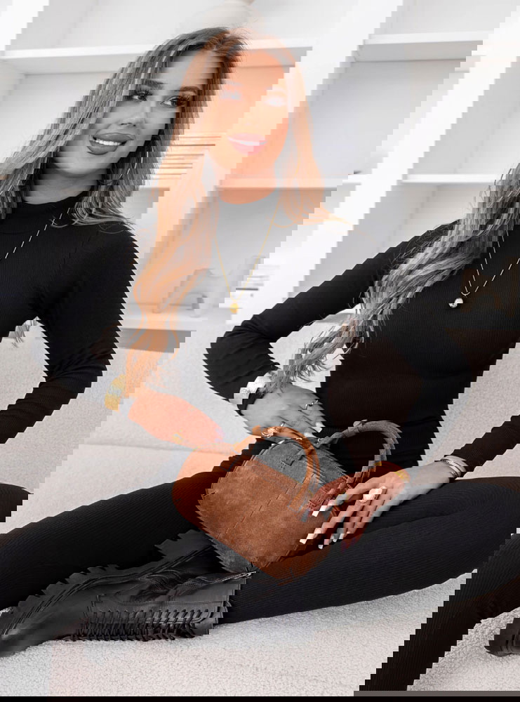 Czarny prążkowany komplet bluzka z...