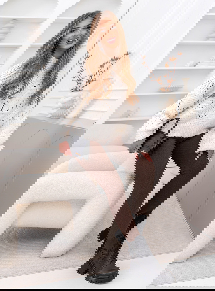 Czekoladowe prążkowane dopasowane legginsy Chamille