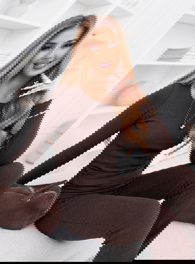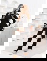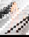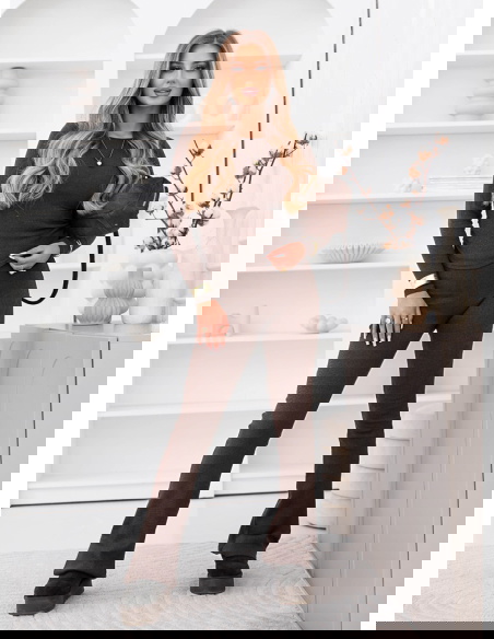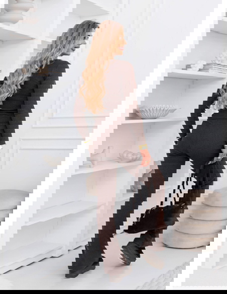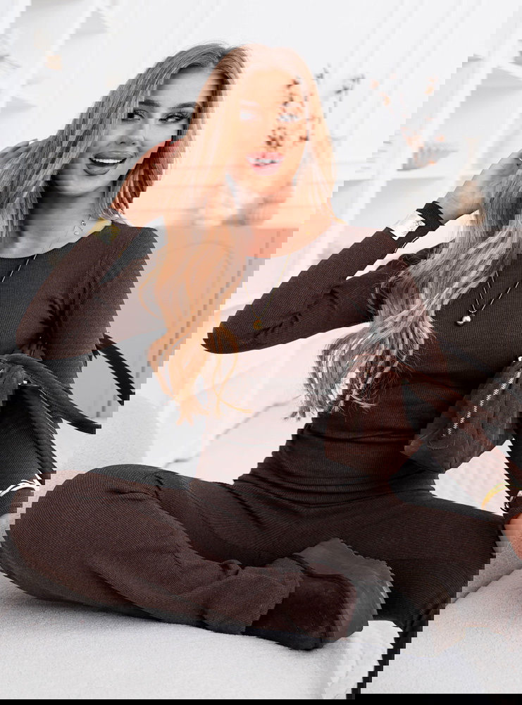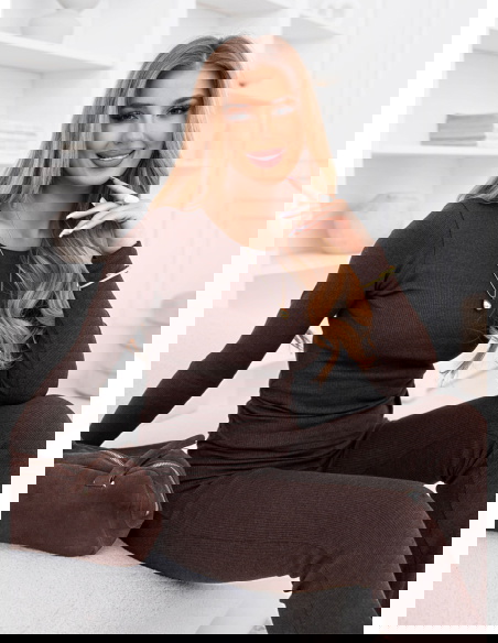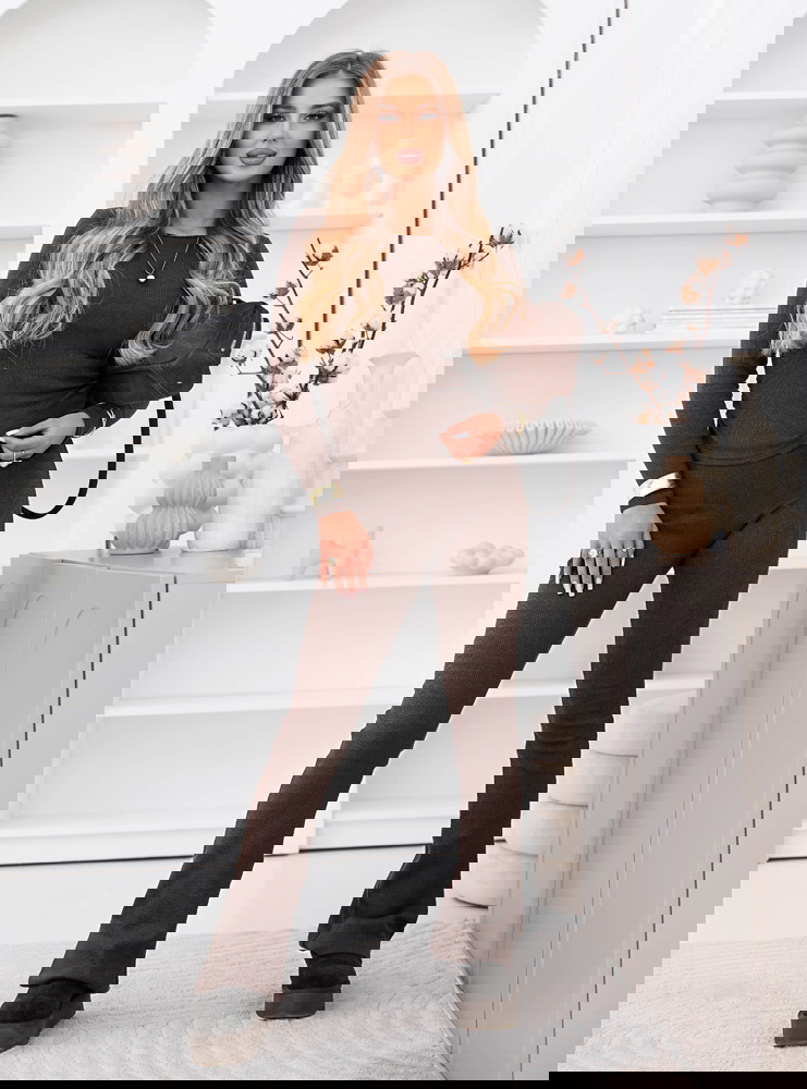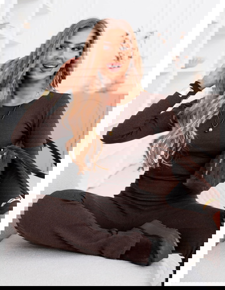 Czekoladowy prążkowany komplet dopasowana bluzka i spodnie Eliviaa