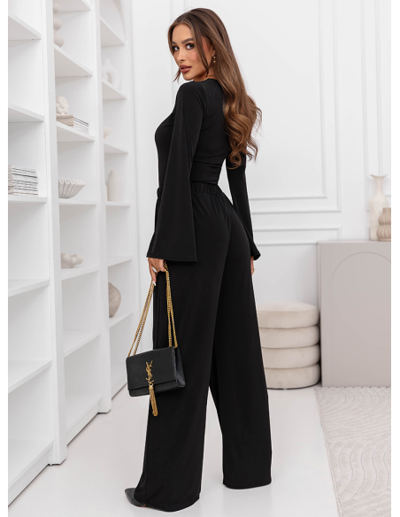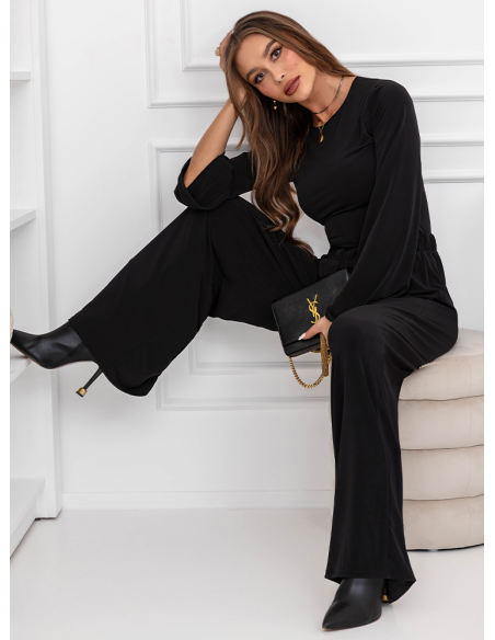 Czarny komplet szerokie spodnie i bluzka Lukia