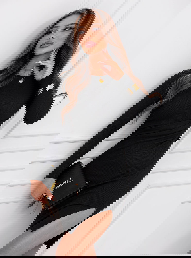 Czarna sukienka mini z rozcięciem Levina to propozycja, która łączy klasykę z wyrazistym, kobiecym akcentem. Dopasowany krój pięknie podkreśla sylwetkę i sprawia, że całość wygląda bardzo zgrabnie. Prążkowane wykończenie dodaje stylizacji charakteru i sprawia, że sukienka prezentuje się nowocześnie. Rozcięcie nadaje lekkości oraz subtelnie podkreśla nogi, tworząc efekt “wow” bez przesady. Długi rękaw równoważy długość mini, dzięki czemu stylizacja jest spójna i elegancka. To model, który świetnie wygląda zarówno w wersji minimalistycznej, jak i z mocniejszymi dodatkami. Sukienka sprawia wrażenie dopracowanej, a jednocześnie nadal bardzo łatwej do noszenia. Wystarczy dobrać ulubione buty i torebkę, by stworzyć gotowy look. To idealny wybór, gdy chcesz czuć się pewnie i wyglądać stylowo przez cały wieczór. Jeśli szukasz małej czarnej z charakterem, właśnie ją znalazłaś.