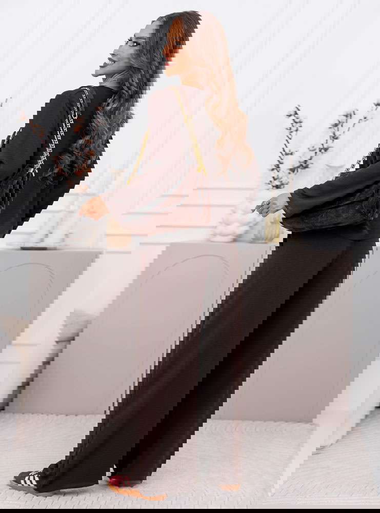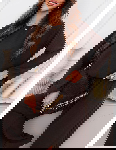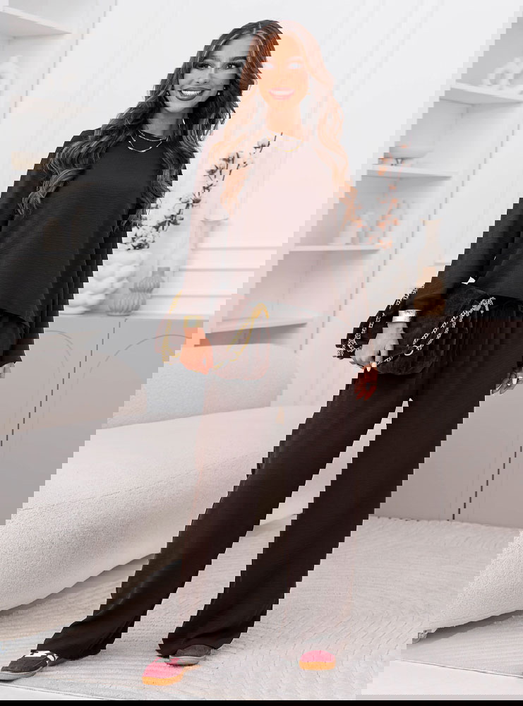 Czekoladowy komplet bluzka i szerokie spodnie Emelene to zestaw, który możesz nosić jako komplet lub miksować z innymi rzeczami z szafy. Dodatki łatwo zmienią jego klimat – od minimalistycznego po bardziej wyjściowy.