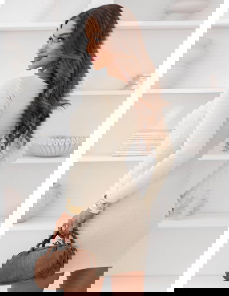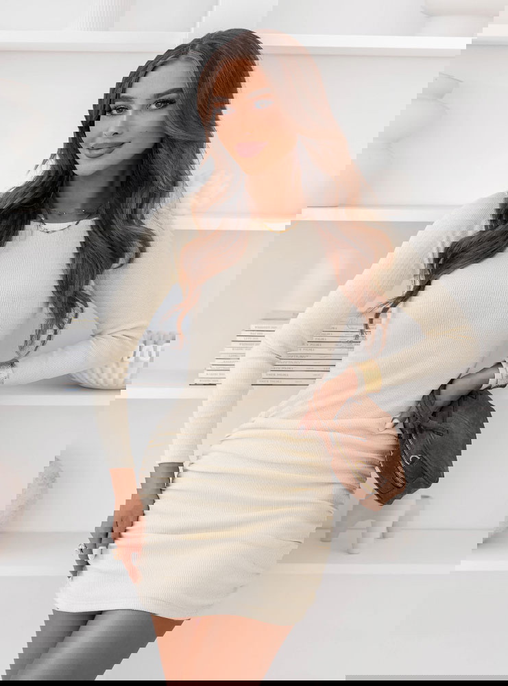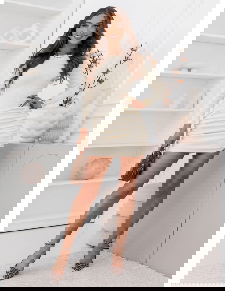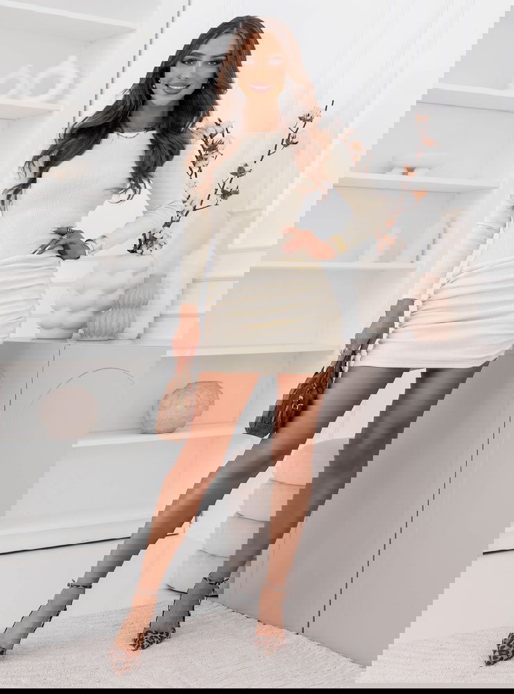 Sukienka mini w prążek z marszczeniami Delightra - mleczna biel to propozycja, która od razu przyciąga spojrzenia swoją prostotą i kobiecym charakterem. Dopasowany krój pięknie podkreśla sylwetkę, a długość mini dodaje lekkości całej stylizacji. Prążkowana struktura nadaje całości modnego, uporządkowanego efektu. Marszczenia w okolicy bioder robią świetną robotę, gdy chcesz uzyskać bardziej zmysłowe wykończenie. Długi rękaw sprawia, że sukienka wygląda elegancko i spójnie. Dekolt jest subtelny, dzięki czemu stylizacja prezentuje się świeżo i z klasą. To model, który łatwo wystylizujesz na różne sposoby – od minimalistycznych po bardziej wyraziste. Sukienka układa się tak, że czujesz się pewnie w ruchu i w zdjęciach. Wystarczy kilka dodatków, by zmienić jej charakter w kilka chwil. Jeśli lubisz rzeczy, które robią efekt bez wysiłku, to będzie strzał w dziesiątkę.