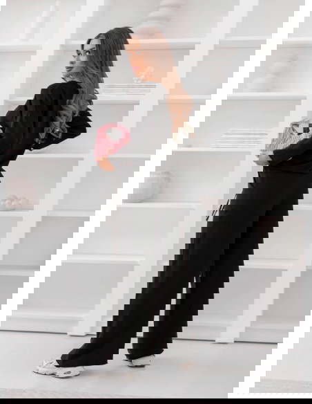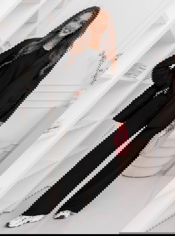 Czarny komplet bluzka i spodnie Judie to gotowa stylizacja, która ułatwia szybkie wyjście z domu bez długiego zastanawiania się. Zestaw łączy swobodę z eleganckim, uporządkowanym wyglądem. Bluzka ma luźniejszą formę i dłuższe rękawy, dzięki czemu prezentuje się lekko i nowocześnie. Spodnie z szeroką nogawką dodają stylizacji efektu „wow”, a jednocześnie nie przytłaczają. Całość świetnie układa się na sylwetce i wygląda spójnie z każdej strony. To propozycja, którą łatwo dopasować do swojego stylu – od minimalistycznego po bardziej wyrazisty. Zestaw wygląda dobrze zarówno ze sportowym obuwiem, jak i z bardziej klasycznymi dodatkami. Czerń dodaje pewności siebie i sprawia, że stylizacja zawsze wygląda schludnie. To komplet, który lubi proste dodatki, ale świetnie znosi też mocniejszą biżuterię. Jeśli cenisz wygodne rozwiązania i chcesz wyglądać świetnie bez wysiłku, ten zestaw będzie strzałem w dziesiątkę.