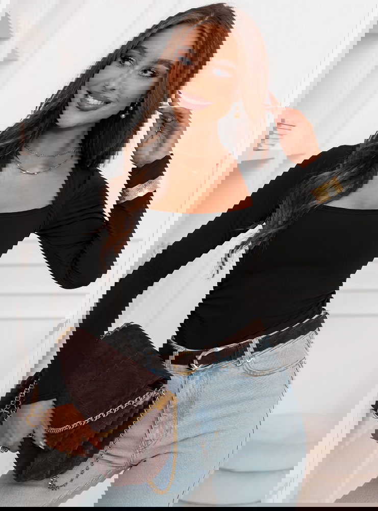 Czarna dopasowana bluzka Chrissta to propozycja, która od razu robi świetne wrażenie w stylizacji. Ma kobiecy, wyważony charakter i łatwo wpisuje się w codzienny rytm. Dopasowany krój ładnie układa się na sylwetce i podkreśla jej linię. Kwadratowy dekolt dodaje całości nowoczesnego sznytu i subtelnie eksponuje szyję. Długie rękawy sprawiają, że wygląda spójnie i elegancko bez wysiłku. To model, który potrafi być zarówno bazą, jak i mocniejszym akcentem w zestawie. Świetnie wygląda solo, ale równie dobrze współgra z marynarką czy kardiganem. Dzięki prostej formie można ją szybko dopasować do różnych dodatków i nastroju. Daje efekt „gotowej stylizacji” nawet wtedy, gdy masz mało czasu. To wybór, po który sięga się często, bo po prostu pasuje do wielu planów.