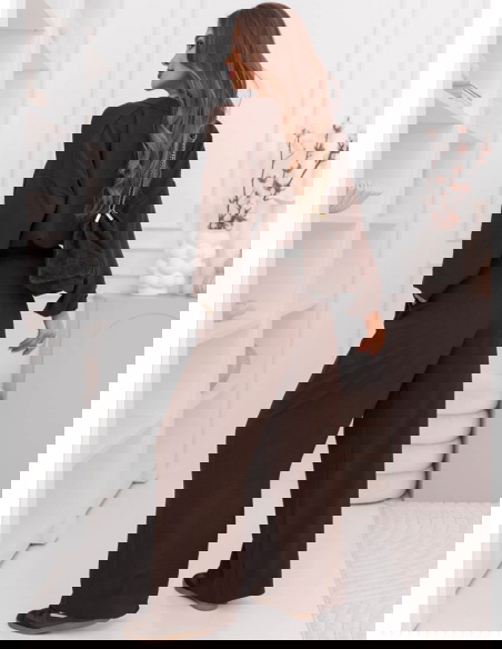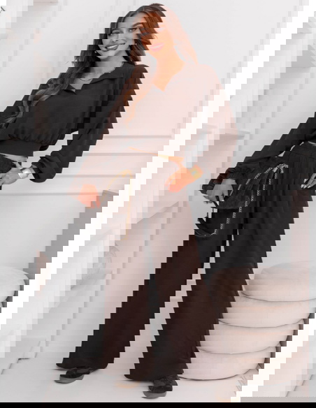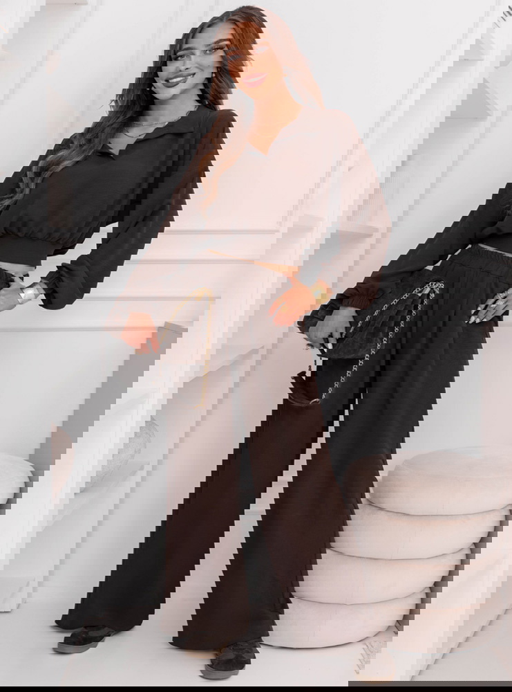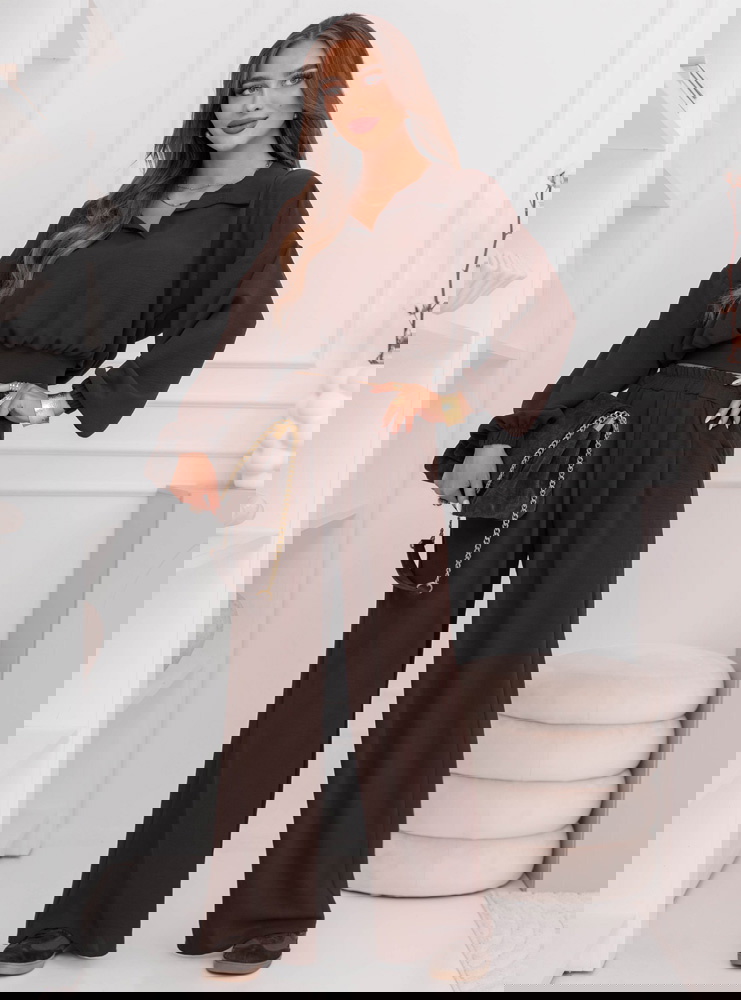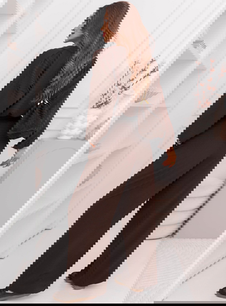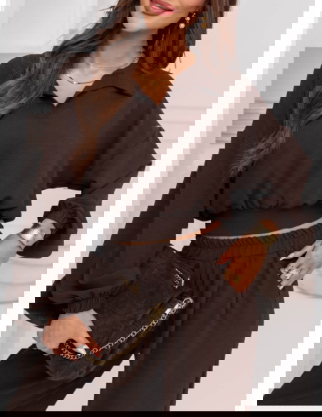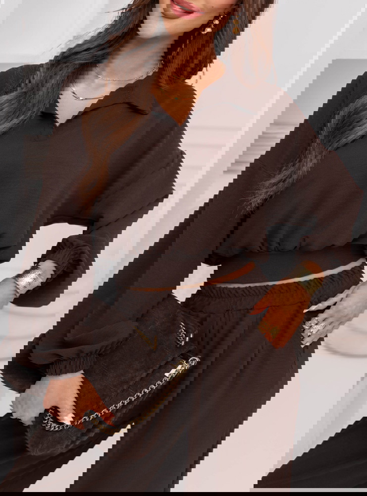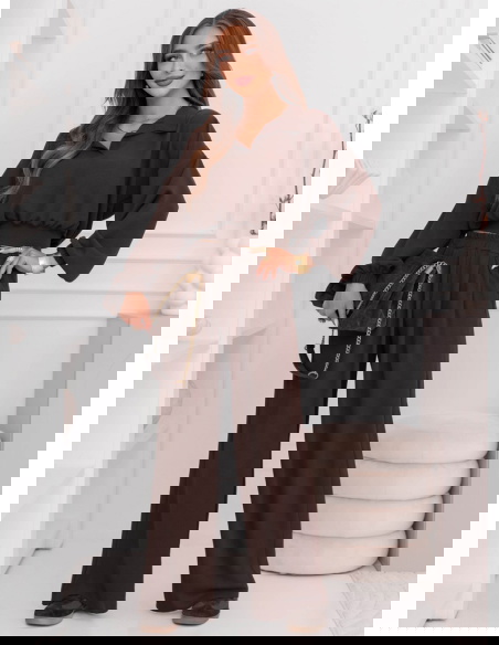 Czekoladowy komplet bluzka i szerokie spodnie Sezenne