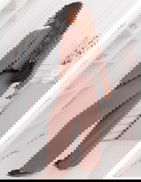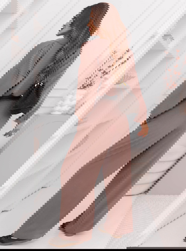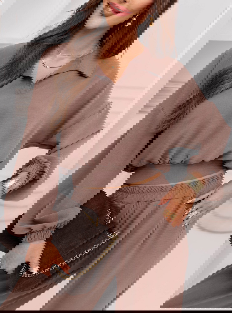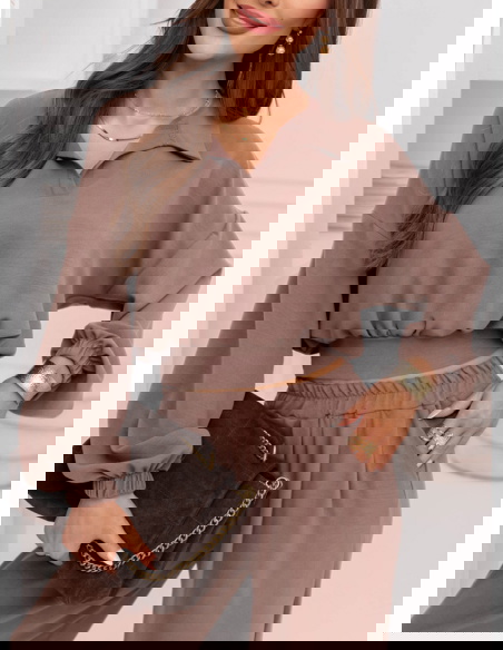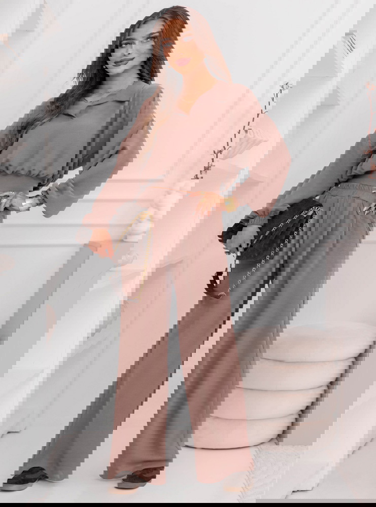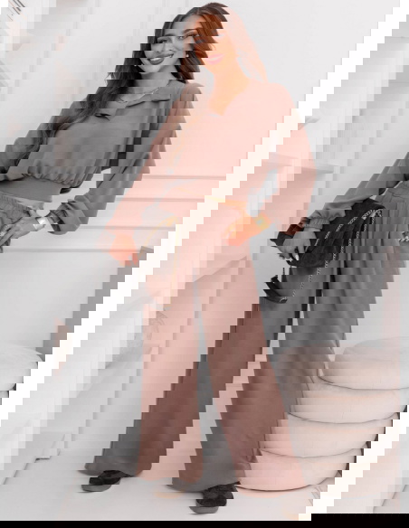Komplet bluzka i szerokie spodnie Sezenne - mocha mousse