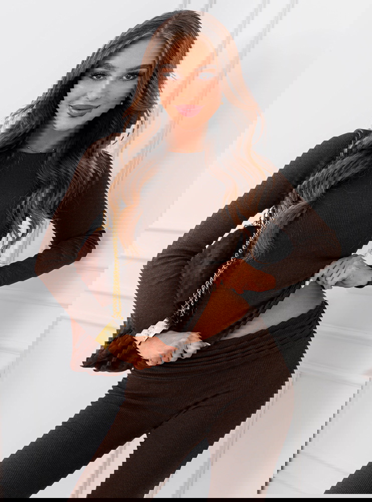 Czekoladowy prążkowany komplet bluzka i spodnie Hannela to stylizacja, która od razu wygląda spójnie i bardzo kobieco. Głęboki odcień czekolady dodaje całości charakteru i prezentuje się wyjątkowo elegancko na co dzień. Dopasowana bluzka z długim rękawem pięknie podkreśla sylwetkę i daje uporządkowany efekt. Spodnie tworzą z nią idealny duet, dzięki czemu nie musisz zastanawiać się, co do czego pasuje. Prążkowana struktura subtelnie urozmaica wygląd i sprawia, że komplet przyciąga uwagę bez przesady. To propozycja dla osób, które lubią wyglądać dopracowanie, ale nadal czuć się swobodnie. Zestaw świetnie prezentuje się z minimalistycznymi dodatkami, ale lubi też mocniejszy akcent w biżuterii. Możesz nosić go razem dla efektu „total look” albo rozdzielić i stworzyć kilka nowych stylizacji. To komplet, który wygląda świetnie zarówno w wersji codziennej, jak i bardziej wyjściowej. Jeśli chcesz mieć w szafie pewniaka, który zawsze robi dobre wrażenie, ten model będzie idealny.
