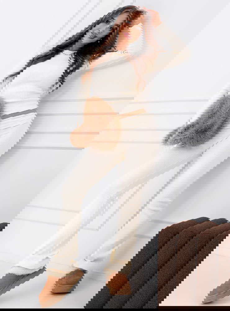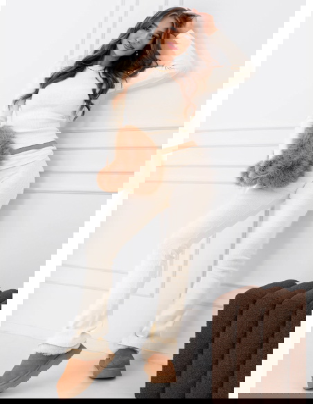 Prążkowany komplet bluzka i spodnie Hannela - mleczna biel