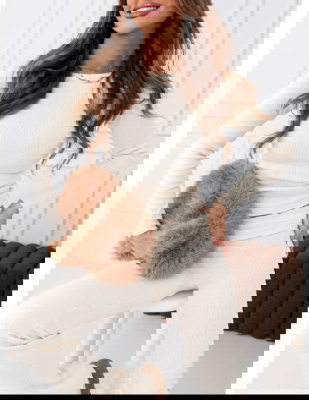 Prążkowany komplet bluzka i spodnie...