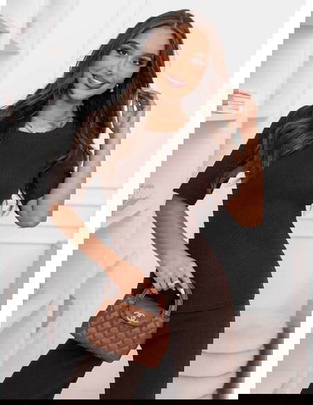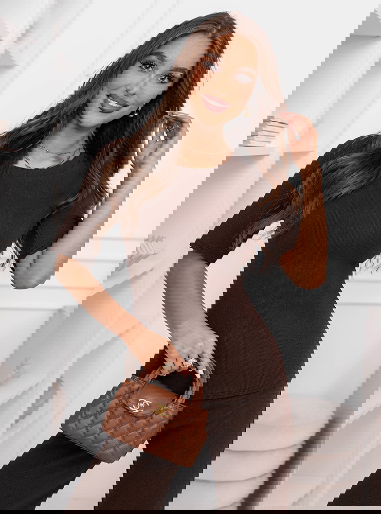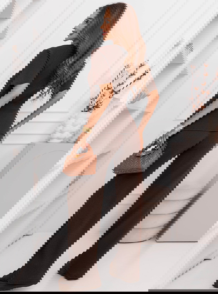 Czekoladowy prążkowany komplet bluzka z krótkim rękawem i spodnie Clotele to zestaw, który łączy wygodę z dopracowanym, kobiecym wyglądem. Od razu widać, że to stylizacja „gotowa”, która nie potrzebuje wielu dodatków, żeby wyglądać świetnie. Krótki rękaw nadaje całości lekkości i sprawia, że komplet idealnie wpisuje się w codzienne tempo dnia. Góra ma dopasowaną, ale prostą linię, dzięki czemu sylwetka wygląda schludnie i naturalnie. Prążkowana struktura dodaje charakteru i sprawia, że nawet minimalistyczny zestaw prezentuje się ciekawie. Spodnie z szeroką nogawką układają się miękko w ruchu i tworzą efekt eleganckiej swobody. Czekoladowy kolor jest ponadczasowy, a jednocześnie wygląda wyjątkowo i „cieplej” niż klasyczne ciemne odcienie. To komplet, który możesz nosić w wersji sportowej, miejskiej albo bardziej dopracowanej – wszystko zależy od dodatków. Dobrze wygląda zarówno z małą torebką, jak i z większą, codzienną wersją. Jeśli szukasz zestawu, który ułatwia stylizowanie i zawsze wygląda na przemyślany, ten model będzie świetnym wyborem.