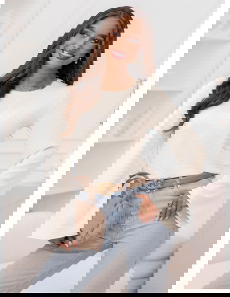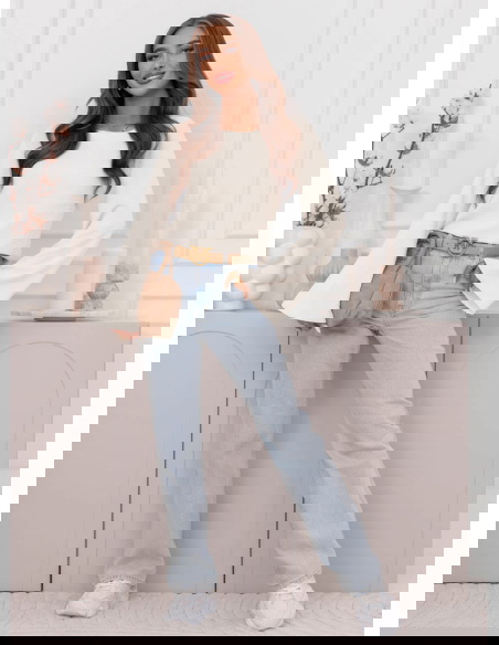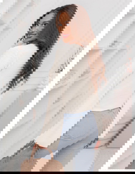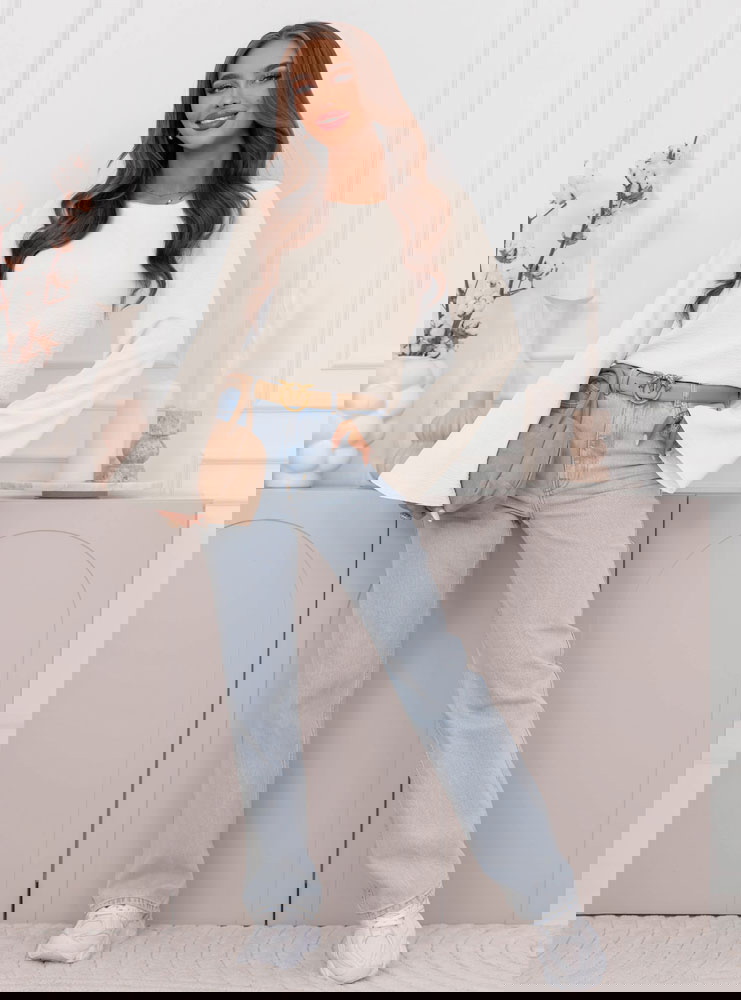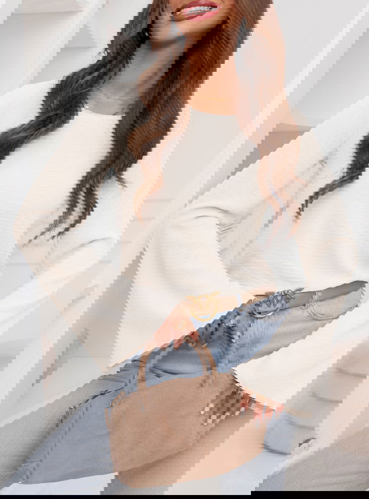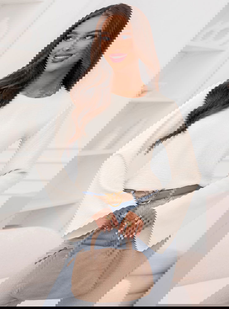 Bluzka z szerokimi rękawami Geradine - mleczna biel to propozycja, która od razu dodaje stylizacji lekkości i świeżości. Jasny odcień pięknie rozświetla całość i wygląda bardzo subtelnie. Prosty krój sprawia, że bluzka pasuje do wielu rzeczy i nie dominuje stylizacji. Szerokie rękawy przyciągają uwagę i nadają całości modnego charakteru. Taki detal sprawia, że nawet najprostszy zestaw wygląda ciekawiej. Dekolt jest klasyczny i dobrze układa się przy szyi, dzięki czemu bluzka wygląda schludnie. Dłuższe rękawy tworzą efekt delikatnej elegancji, ale nadal pozostają bardzo codzienne. To model, który świetnie wygląda zarówno w luźnych, jak i bardziej dopracowanych stylizacjach. Możesz ją nosić solo albo jako bazę pod inne warstwy. To bluzka, po którą sięgniesz wtedy, gdy chcesz wyglądać ładnie bez przesady.