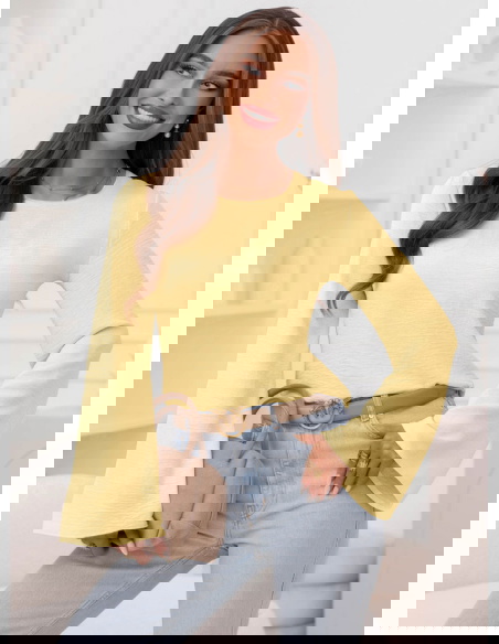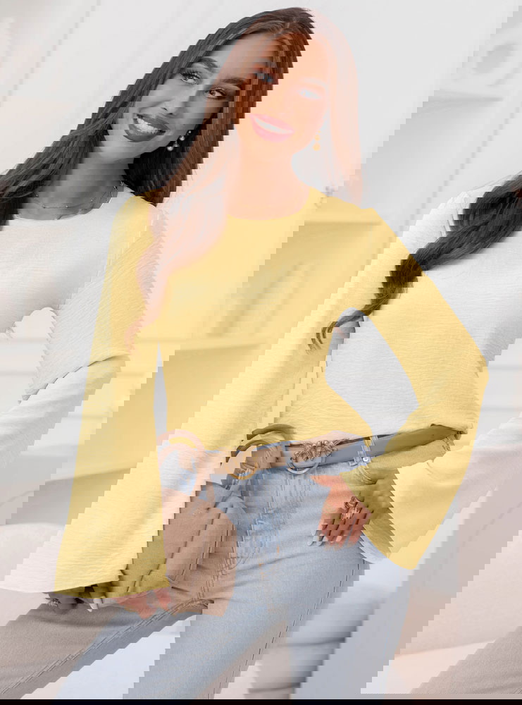 Bluzka z szerokimi rękawami Geradine - masełkowa to świetny wybór na co dzień, gdy chcesz wyglądać lekko i stylowo. Sprawdzi się na wyjście na miasto, spotkanie na kawę czy dzień w biegu.