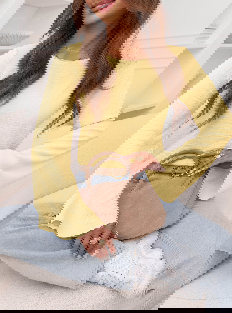 Bluzka z szerokimi rękawami Geradine - masełkowa to propozycja, która od razu rozświetla stylizację i dodaje jej lekkości. Masełkowy odcień wygląda świeżo i subtelnie, dzięki czemu łatwo go wkomponować w codzienne zestawy. Szerokie rękawy przyciągają uwagę i nadają całości modnego, efektownego wyrazu. Prosta góra bluzki sprawia, że całość pozostaje wyważona i nie wygląda przesadnie. To model, który łączy wygodę z ciekawym detalem, bez konieczności kombinowania z dodatkami. Świetnie wygląda w stylizacjach na luzie, ale równie dobrze może prezentować się bardziej elegancko. Możesz nosić ją do jeansów, spodni materiałowych albo spódnicy, zależnie od nastroju. Rękawy pięknie pracują w ruchu i dodają sylwetce lekkości. To bluzka, która potrafi odmienić prosty zestaw w coś bardziej „wow”. Idealna, gdy chcesz postawić na delikatny kolor i efektowną formę w jednym.