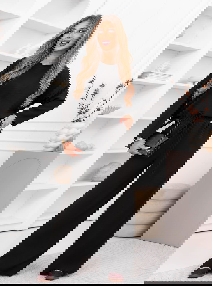 Czarny komplet bluzka i spodnie Kannelite