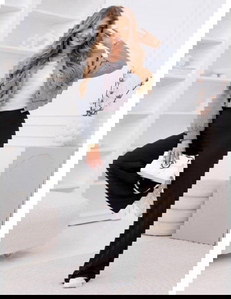 Czarne spodnie z rozszerzanymi nogawkami Hanriette to propozycja, która świetnie łączy wygodę z modnym, wydłużającym efektem. Rozszerzana nogawka optycznie wysmukla sylwetkę i dodaje stylizacji lekkości. Wysoki, gładki pas w talii wygląda bardzo schludnie i pomaga uzyskać ładne proporcje. To model, który łatwo dopasować do różnych stylów — od sportowych po bardziej eleganckie. Czerń sprawia, że spodnie są uniwersalne i zawsze wyglądają dobrze. Świetnie prezentują się z dopasowaną górą, ale też z luźniejszą bluzą czy koszulą. Nogawki ładnie układają się w ruchu i dają efekt „długich nóg”. To spodnie, które potrafią zrobić całą stylizację nawet przy prostym topie. Sprawdzą się wtedy, gdy chcesz wyglądać stylowo, ale bez przesady. To pewniak w szafie na dni, kiedy potrzebujesz czegoś wygodnego i dopracowanego jednocześnie.