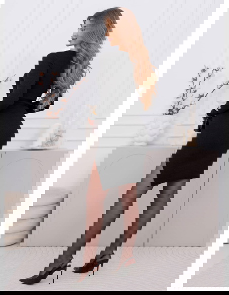 Czarna prążkowana sukienka mini z rozcięciem Donlon to propozycja, która od razu robi wrażenie i pięknie podkreśla sylwetkę. Czerń dodaje klasy, a mini długość nadaje całości wyrazistego, kobiecego charakteru. Prążkowana struktura sprawia, że sukienka wygląda ciekawie i nie potrzebuje wielu dodatków. Długi rękaw równoważy krótszą długość, dzięki czemu stylizacja jest zmysłowa, ale nadal elegancka. Rozcięcie dodaje lekkości i świetnie wygląda w ruchu, podkreślając nogi w subtelny sposób. Taki fason idealnie sprawdzi się, gdy chcesz wyglądać dopracowanie bez przesadnego strojenia się. Sukienka świetnie pasuje zarówno do klasycznych szpilek, jak i do botków czy kozaków. To model, który łatwo wystylizować na różne okazje, zmieniając tylko dodatki. Całość wygląda nowocześnie i bardzo „na wyjście”, ale nadal pozostaje prosta i czytelna. Jeśli szukasz mini sukienki, która podkreśla atuty i zawsze wygląda efektownie, ten model będzie strzałem w dziesiątkę.