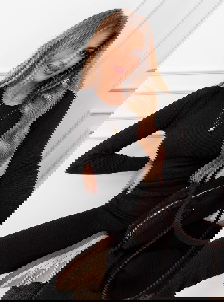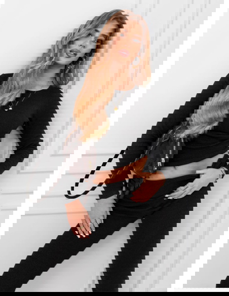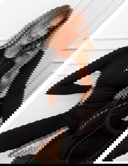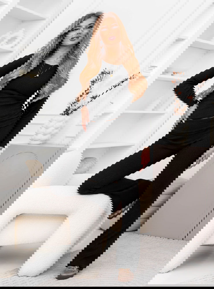 Czarny prążkowany komplet bluzka i spodnie Gracelynn to gotowa stylizacja, która od razu wygląda spójnie i nowocześnie. Klasyczna czerń sprawia, że zestaw łatwo dopasujesz do dodatków i różnych okazji. Prążkowana faktura dodaje całości charakteru i sprawia, że look nie jest „zwykłą bazą”. Bluzka ma dopasowaną linię, dzięki czemu sylwetka wygląda zgrabnie i uporządkowanie. Długi rękaw nadaje całości elegancji i świetnie wpisuje się w codzienne tempo. Spodnie tworzą z górą harmonijny duet i ładnie układają się w ruchu. Taki komplet daje efekt dopracowanej stylizacji bez długiego planowania. Możesz nosić go jako total look albo przełamać mocniejszym akcentem w dodatkach. To propozycja, która sprawdza się, gdy chcesz wyglądać dobrze i czuć się swobodnie. Jeśli lubisz proste rozwiązania z modowym twistem, ten komplet szybko stanie się Twoim pewniakiem.
