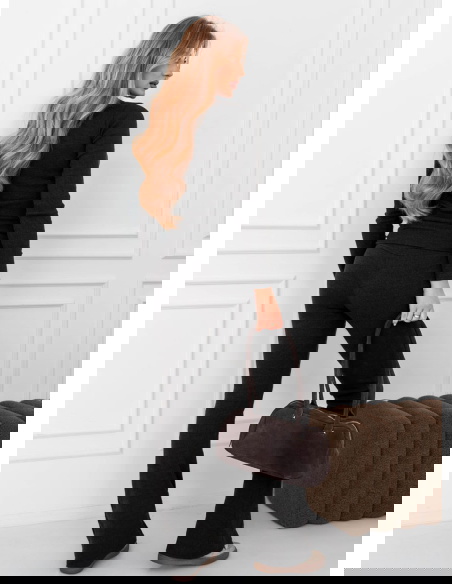 Czarny prążkowany komplet bluzka i...